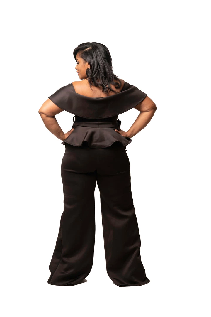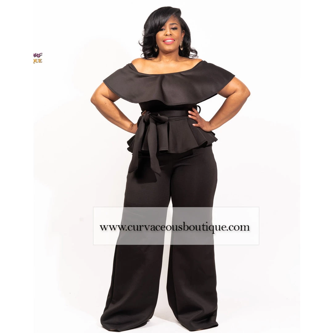 Curvaceous Boutique Black Cremier Peplum Jumpsuit