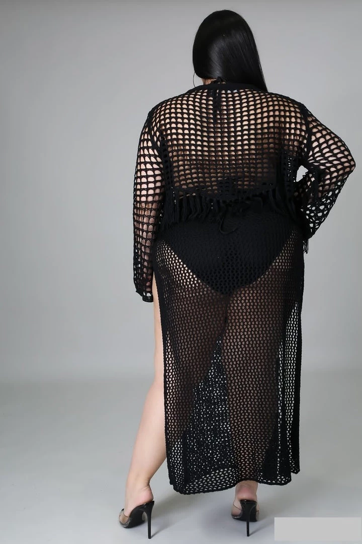 Curvaceous Boutique Black Crochet Slip Thru Set