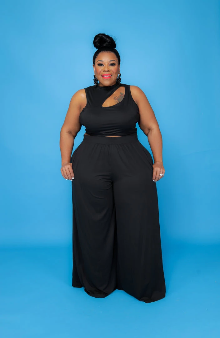 Curvaceous Boutique Black Cut-Out Wide-Leg Set SETS
