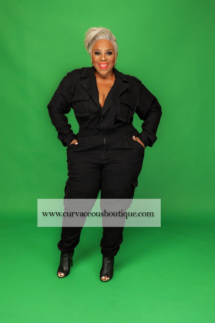 Curvaceous Boutique Black Denver Denim Jumpsuit JUMPSUITS