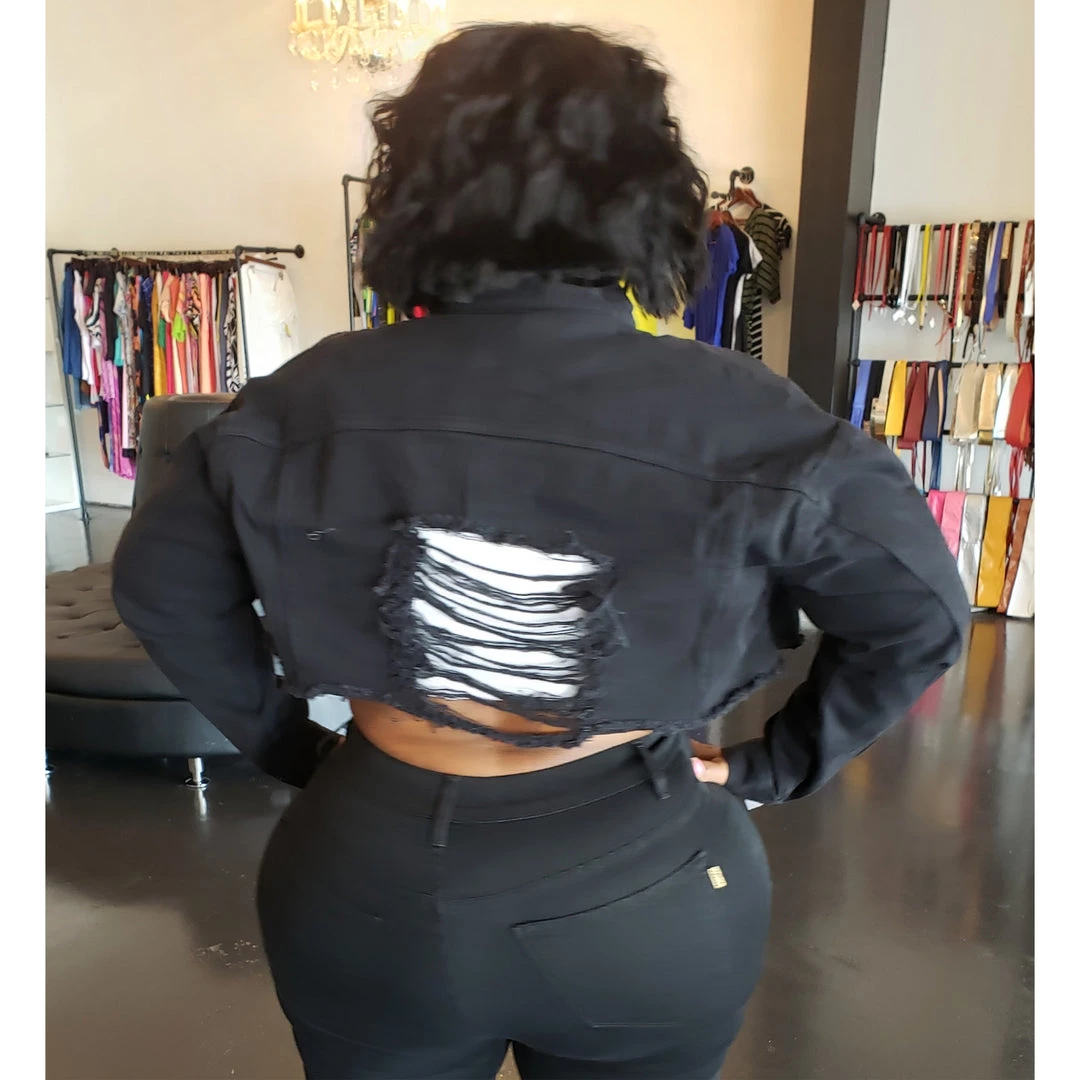 Curvaceous Boutique Black Distressed Denim Crop Jacket NEW