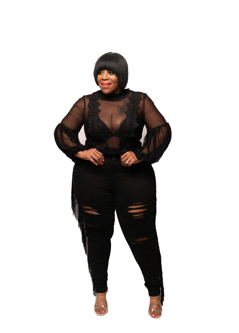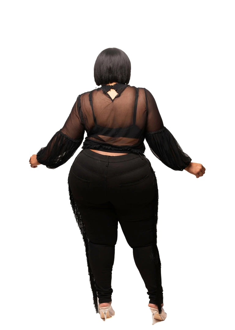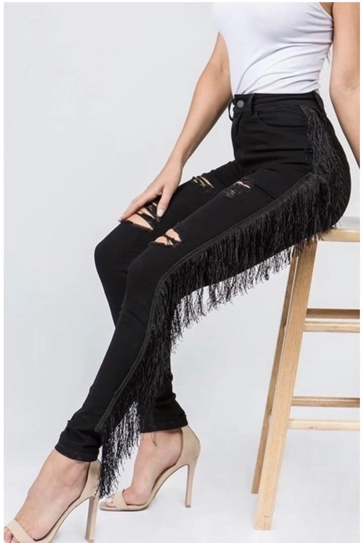 Curvaceous Boutique Black Fringe Distressed Jeans