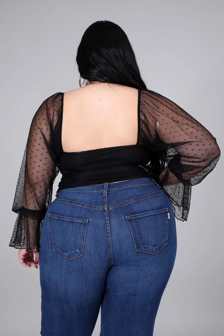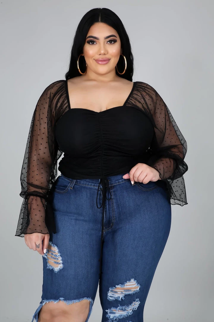 Curvaceous Boutique Black Mesh Drawstring Top SALE