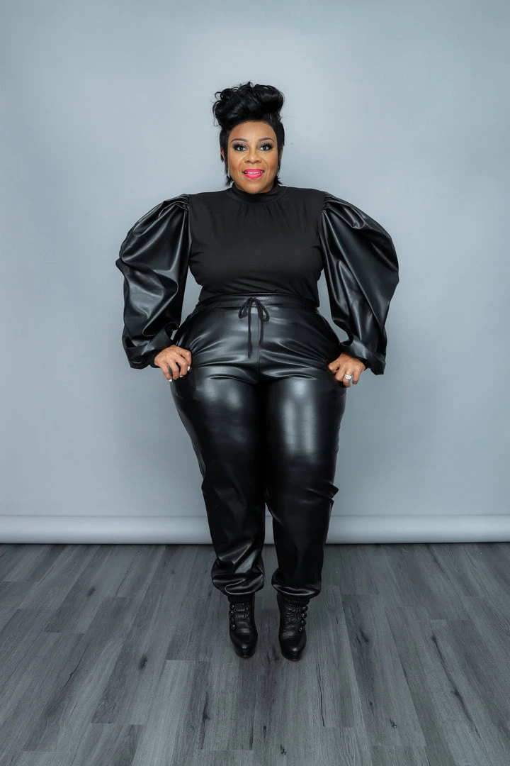 Curvaceous Boutique Black Vegan Leather Jogger Set SETS