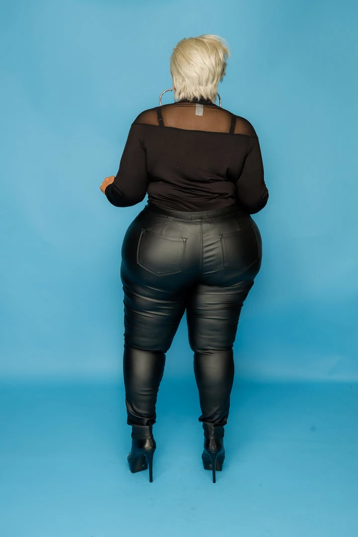 Curvaceous Boutique Black Zipper Faux Leather Pants