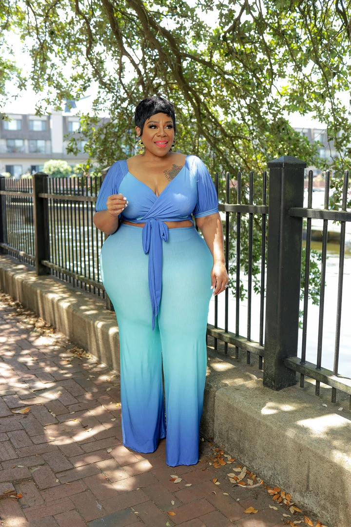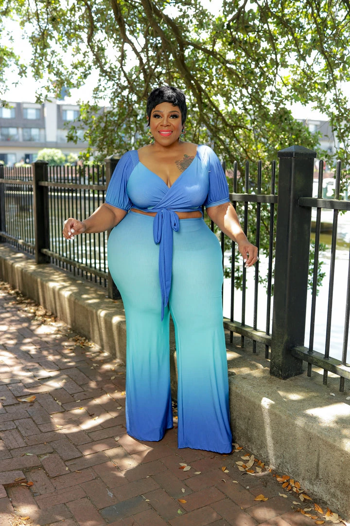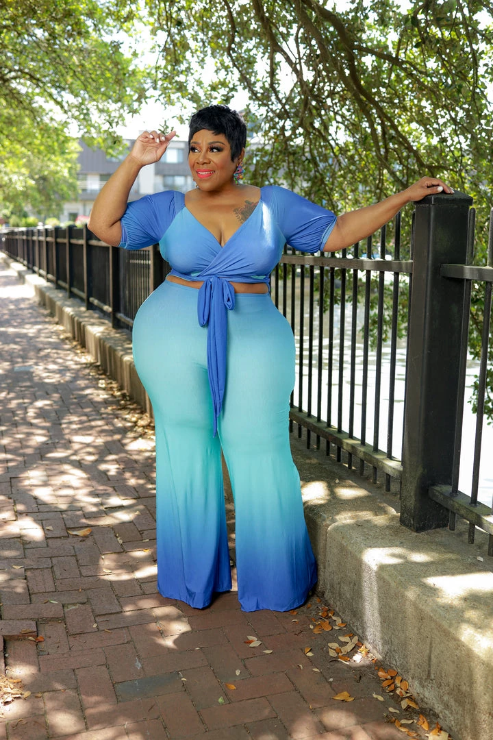 Curvaceous Boutique Blue Ombre Cut-Out Jumpsuit