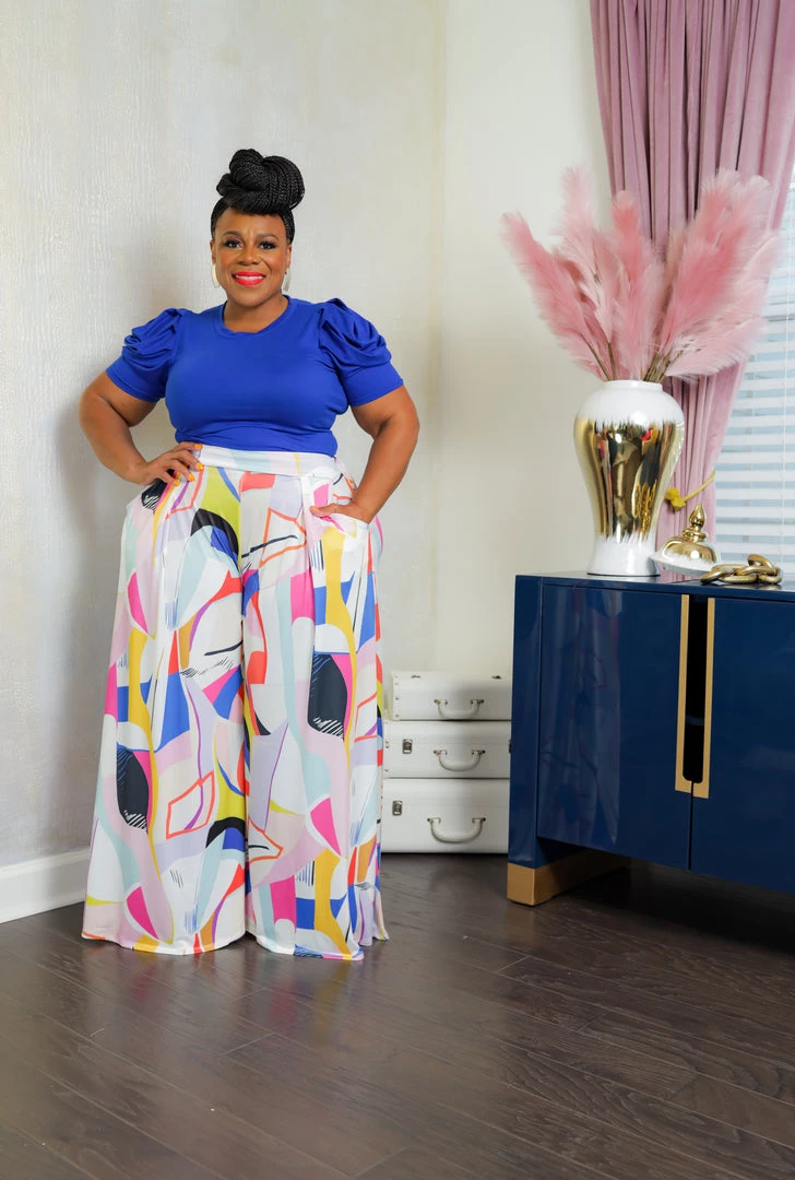 Curvaceous Boutique Blue Pop Art Palazzo Set
