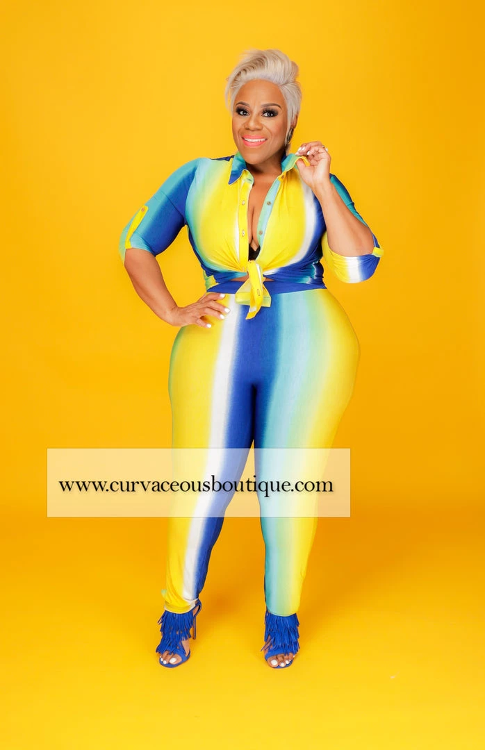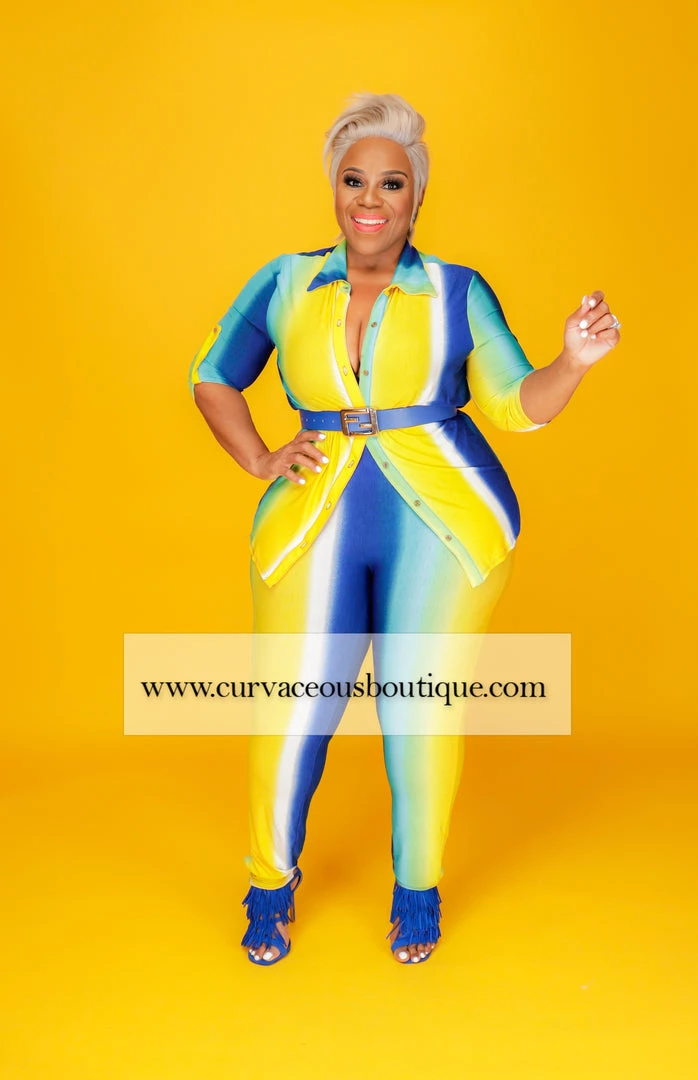 Curvaceous Boutique Blue & Yellow Stripe Legging Set SETS