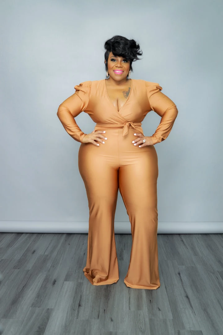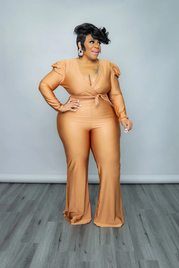 Curvaceous Boutique Bronze Selena Flare Jumpsuit