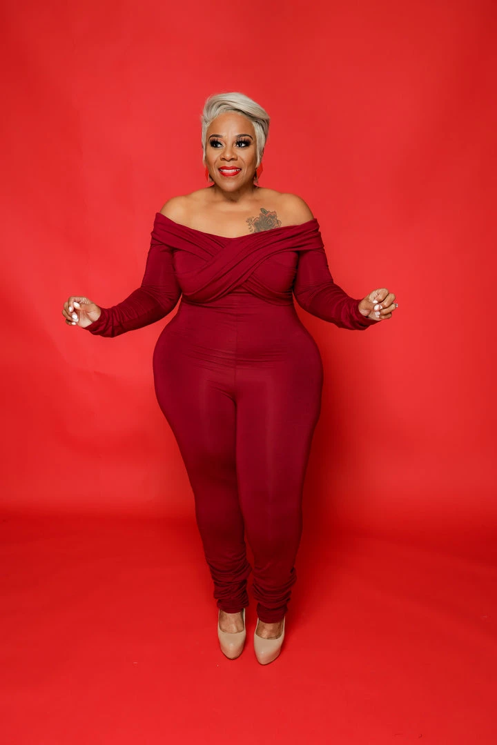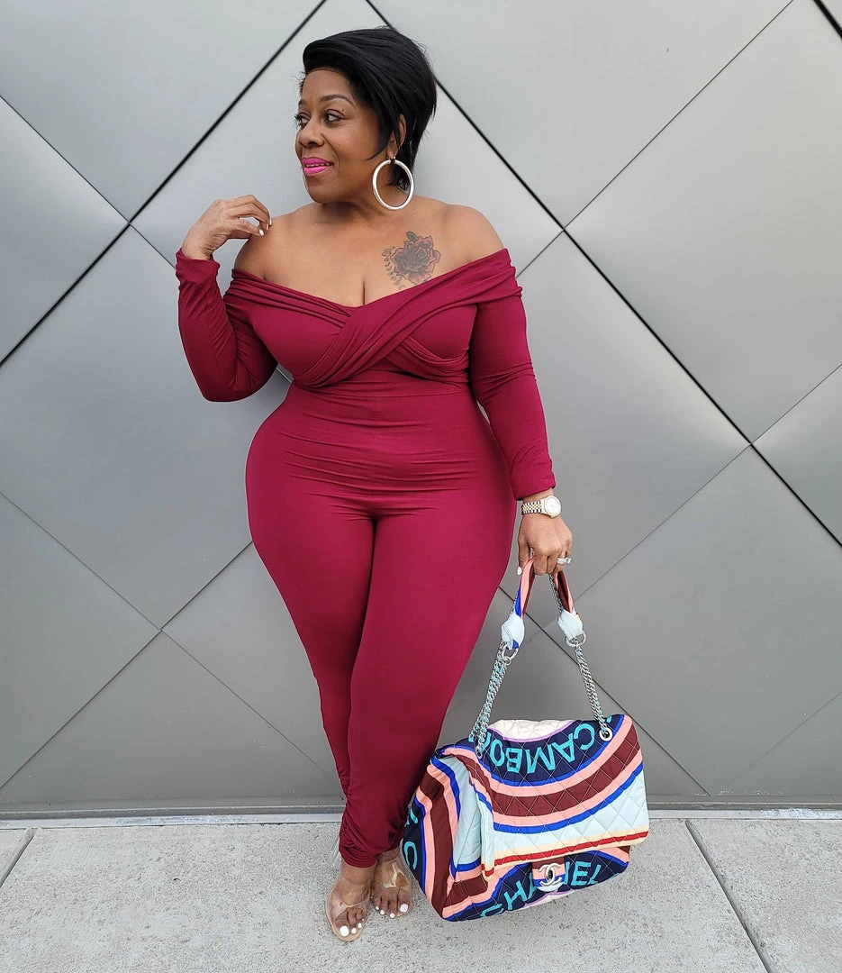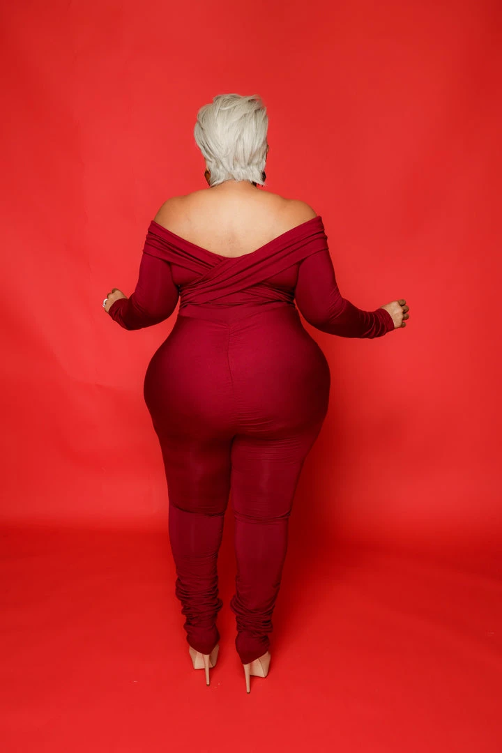 Curvaceous Boutique Burgundy Off Shoulder Catsuit