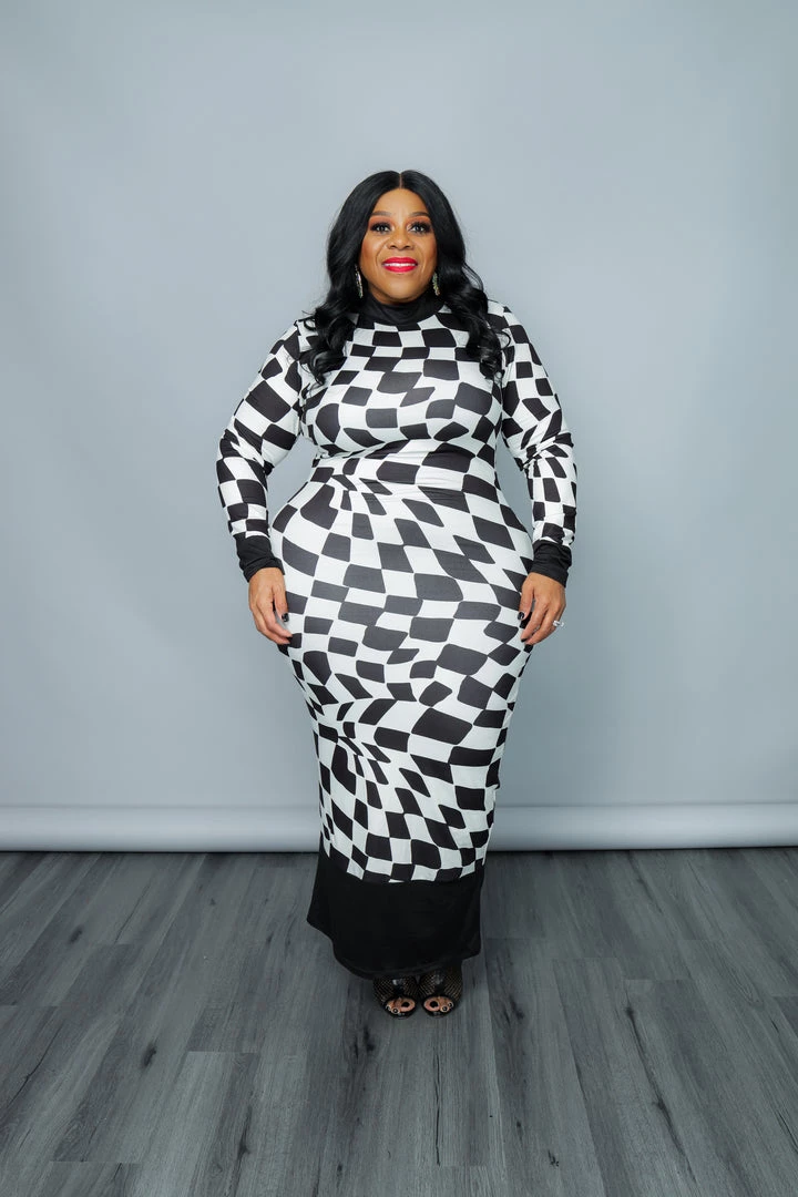 Curvaceous Boutique Checkered Board Midi Dress DRESSES