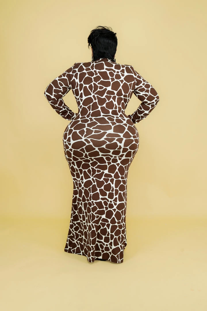 Curvaceous Boutique Chocolate Giraffe Print Dress SALE