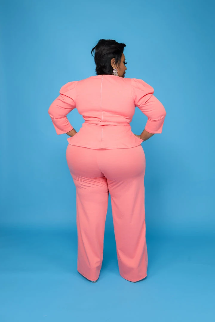 Curvaceous Boutique Coral Elisa Peplum Set