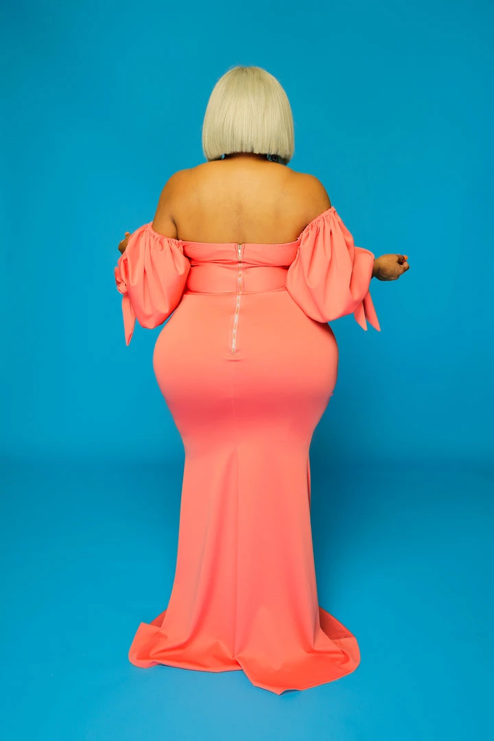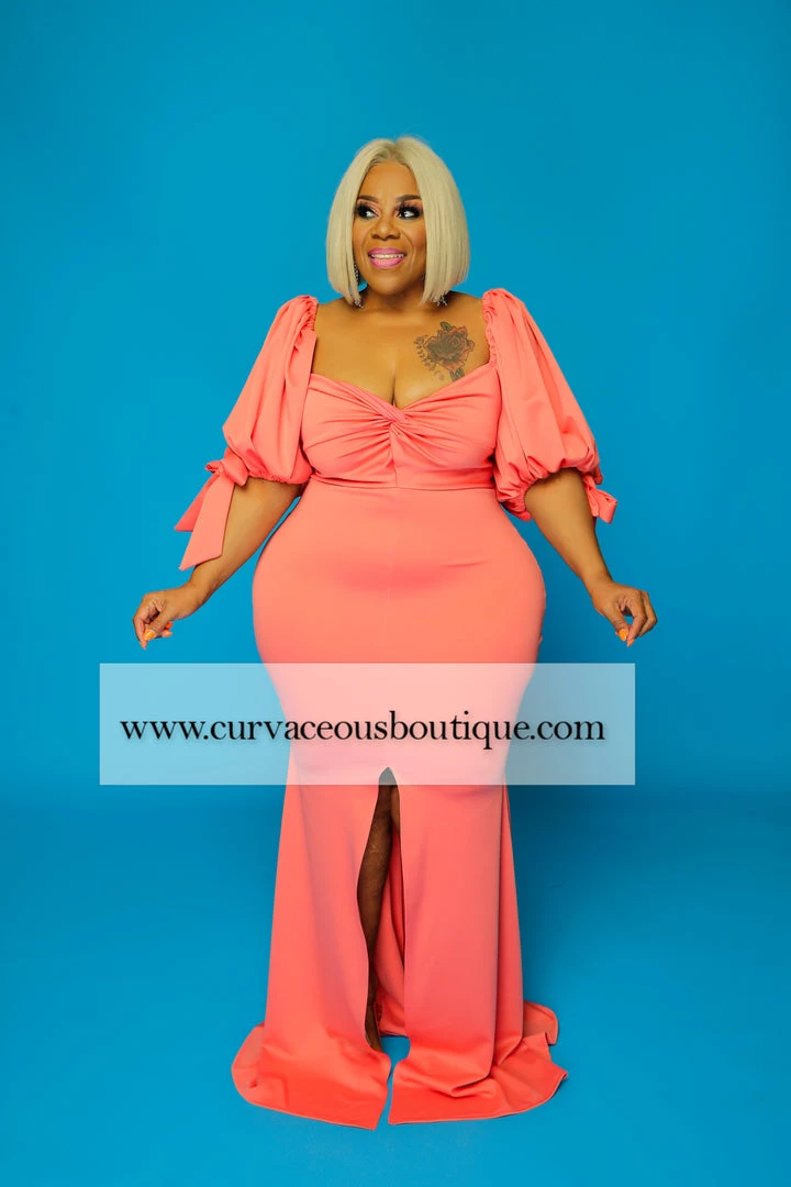 Curvaceous Boutique Coral Zaya Puff Sleeve Dress SALE