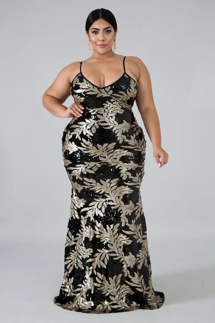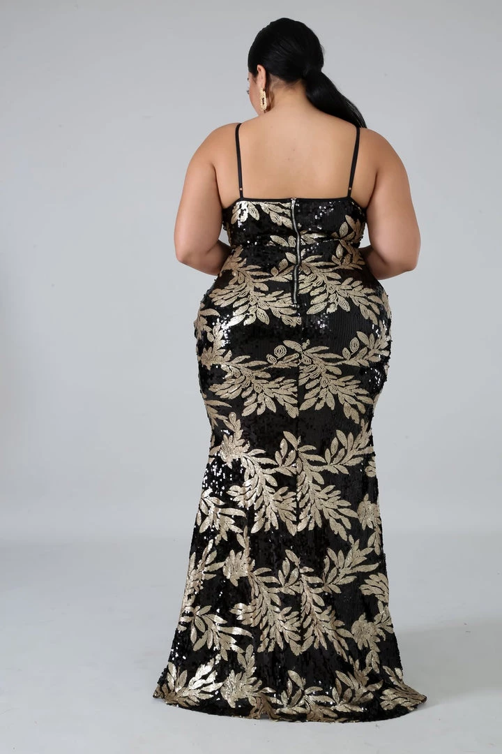 Curvaceous Boutique DRESSES Black Addison Leaf Sequin Gown