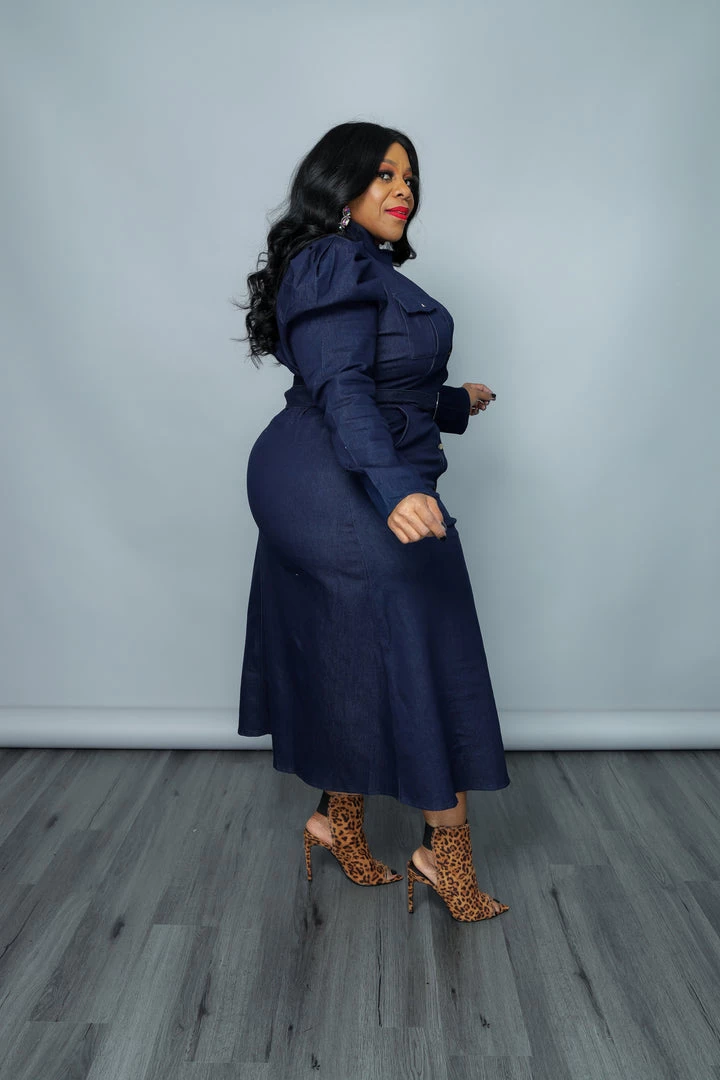 Curvaceous Boutique DRESSES Dark Blue Kristy Denim Dress