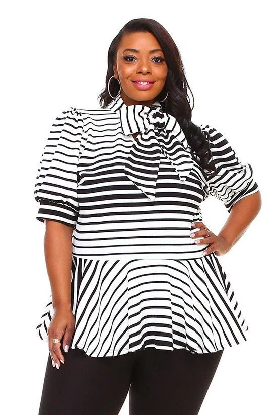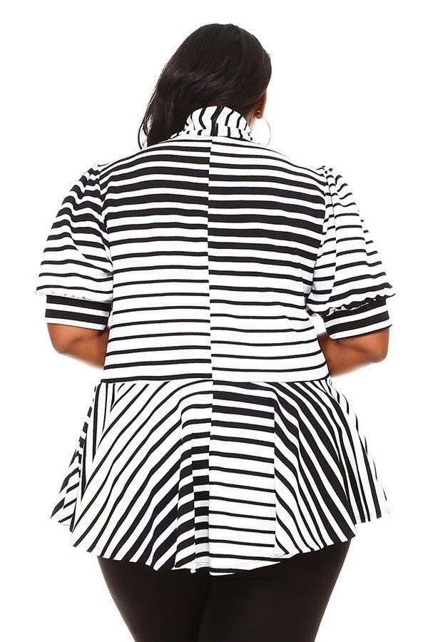 Curvaceous Boutique Extended Size Stripe Peplum Top PLUS 4X, 5X, 6X