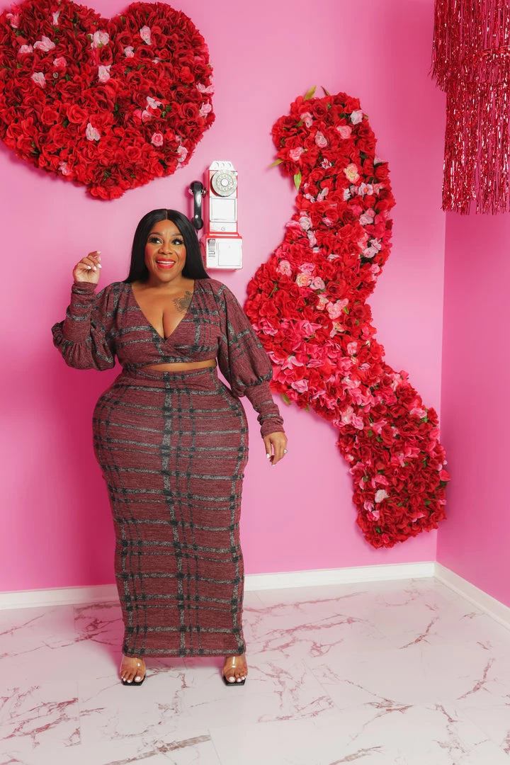 Curvaceous Boutique Grey Plaid Maxi Skirt Set SETS