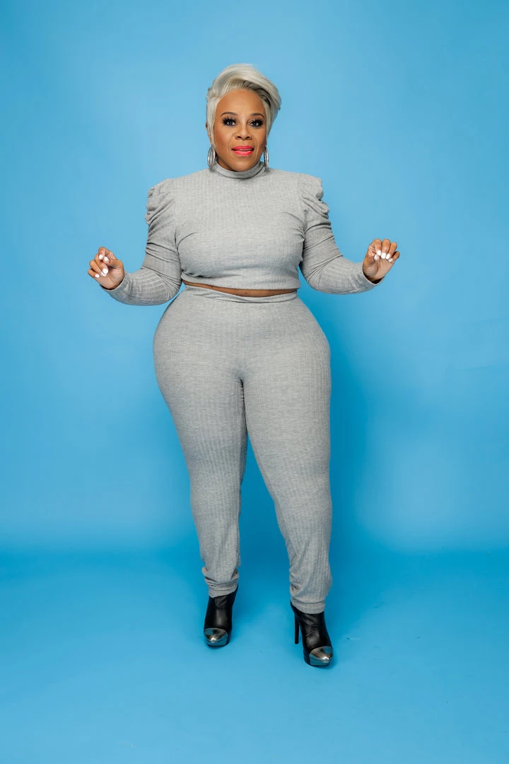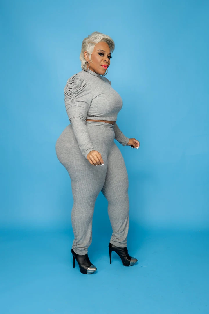 Curvaceous Boutique Grey Scrunched Sleeve Set SALE