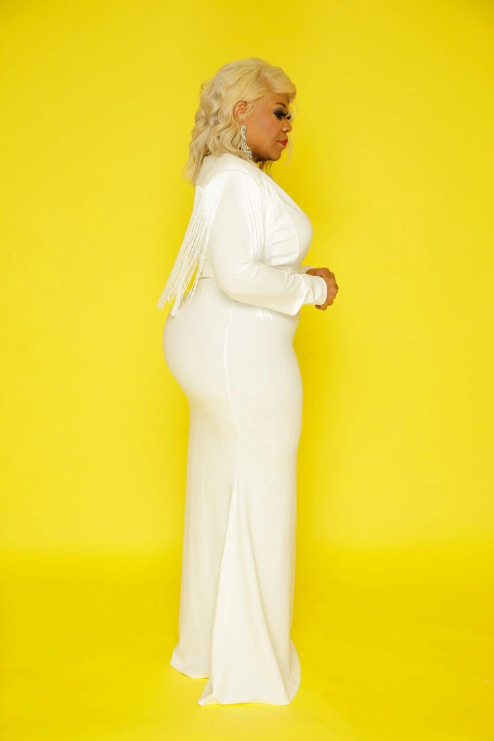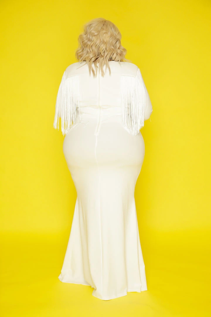 Curvaceous Boutique Ivory Glam Fringe Gown