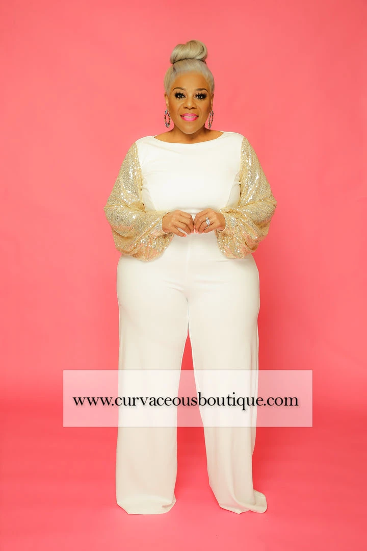 Curvaceous Boutique JUMPSUITS Ivory Runway Sequin Jumpsuit