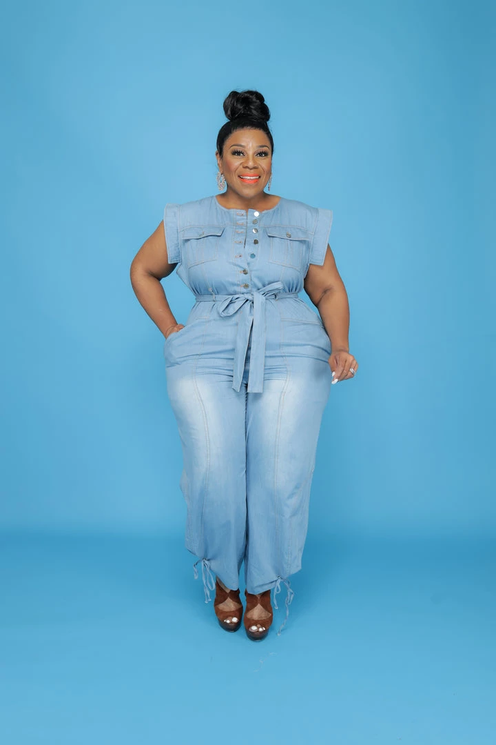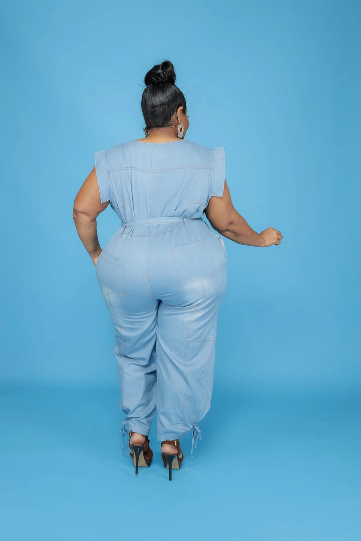 Curvaceous Boutique JUMPSUITS Light Blue Ankle Tie Denim Jumpsuit