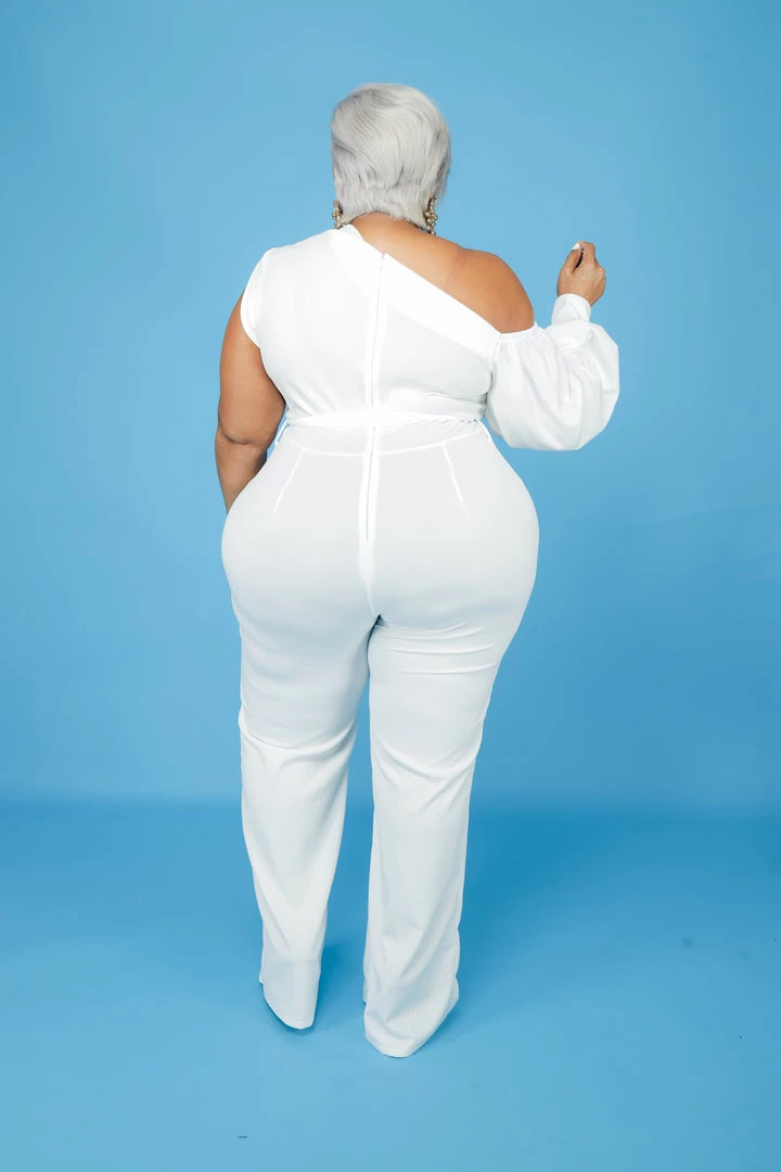 Curvaceous Boutique JUMPSUITS Off White Cold Shoulder Jumpsuit