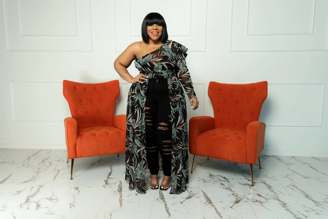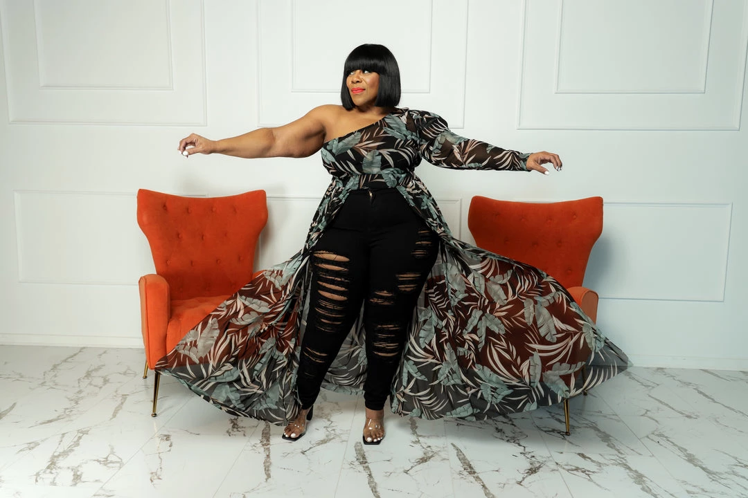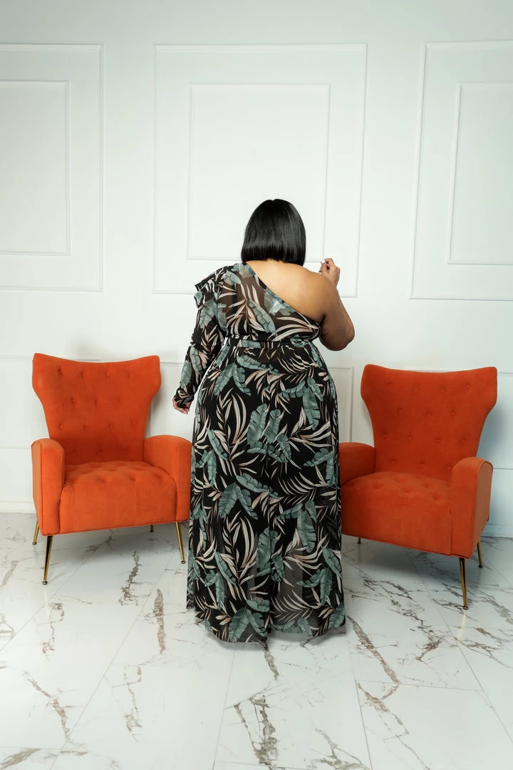 Curvaceous Boutique Leaf Sheer One Sleeve Maxi Top