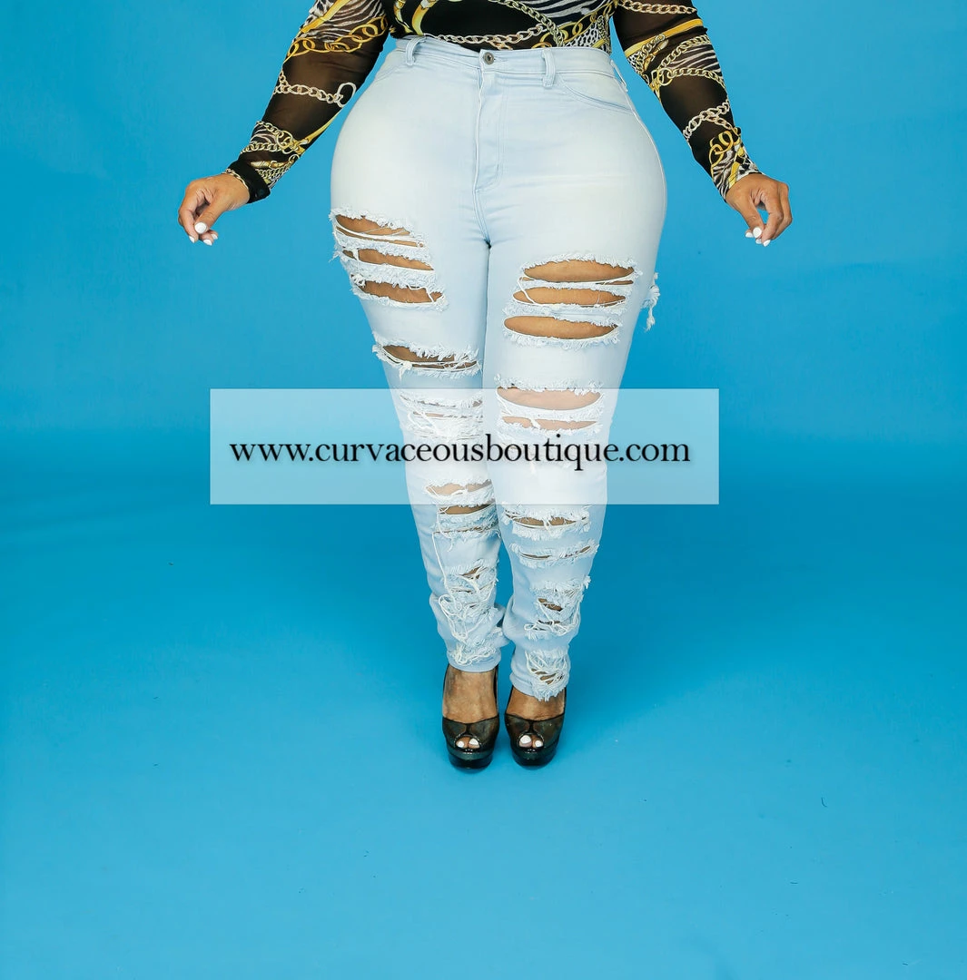 Curvaceous Boutique Light Blue Double Ripped Jeans