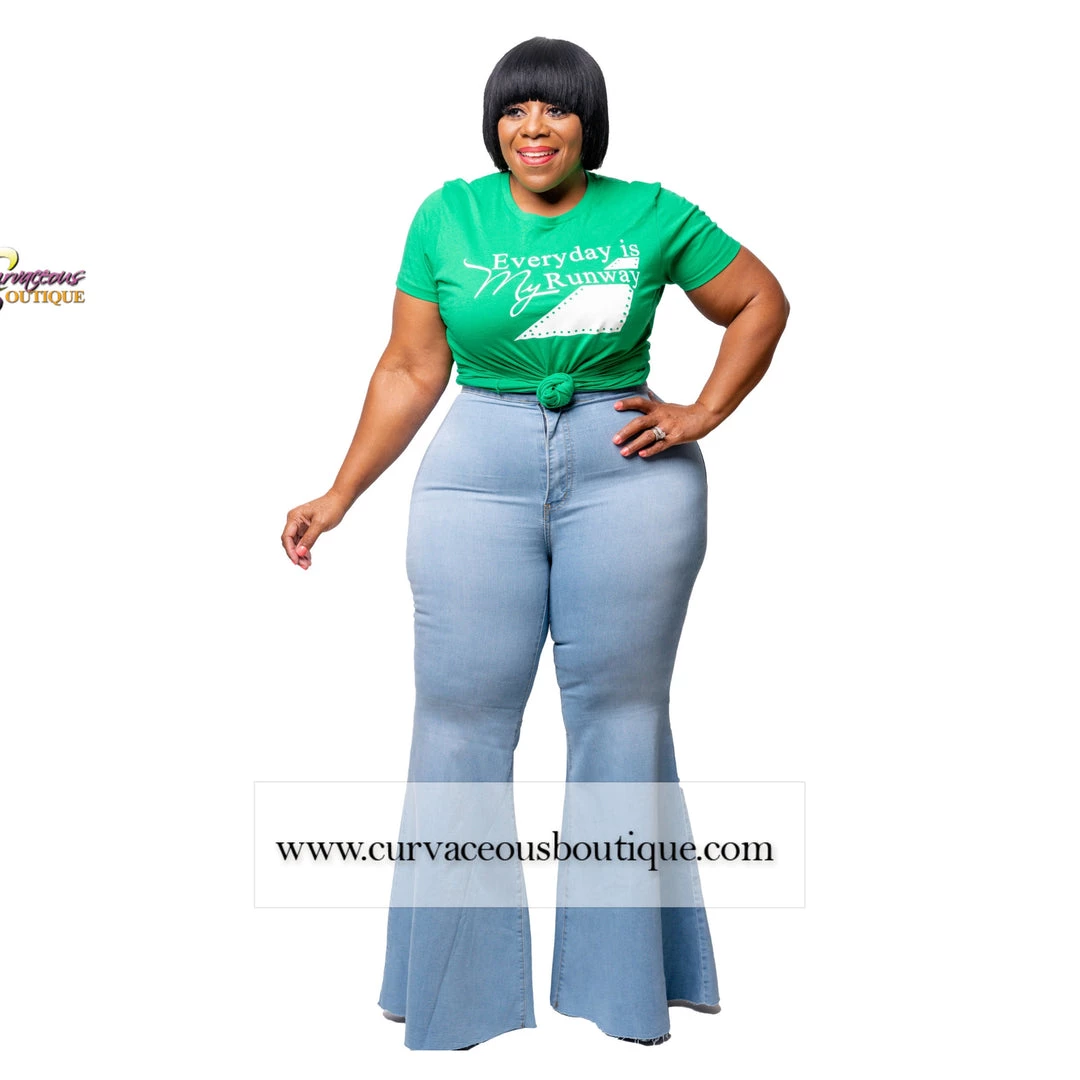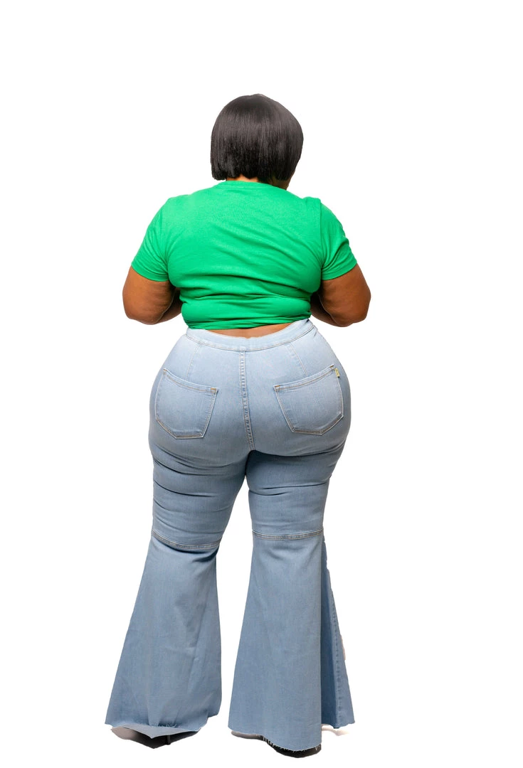 Curvaceous Boutique Light Blue Plain Bell Bottom Jeans