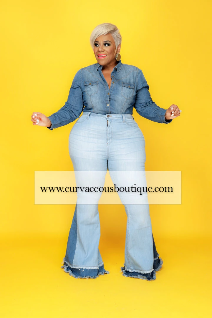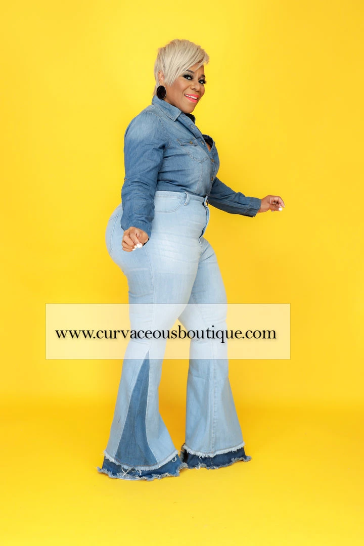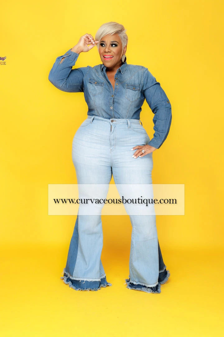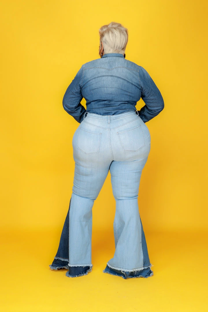 Curvaceous Boutique Light Duo Tone Flare Jeans