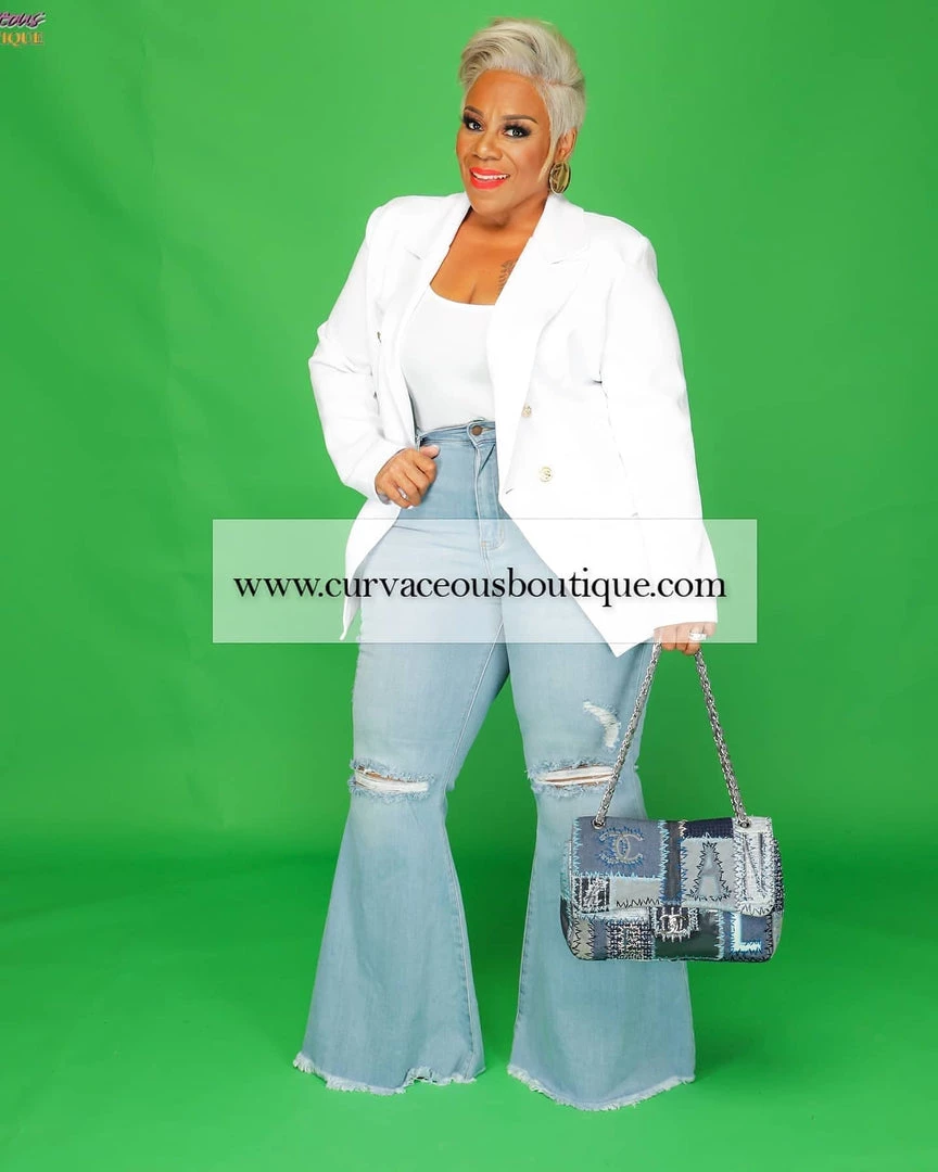 Curvaceous Boutique Light Stone Frayed Bell Jeans