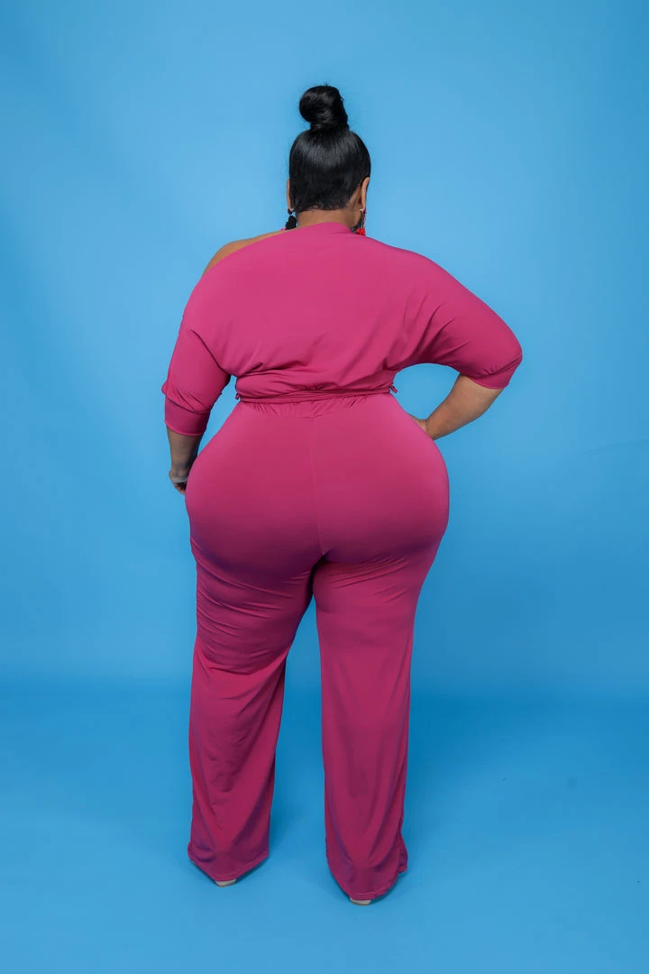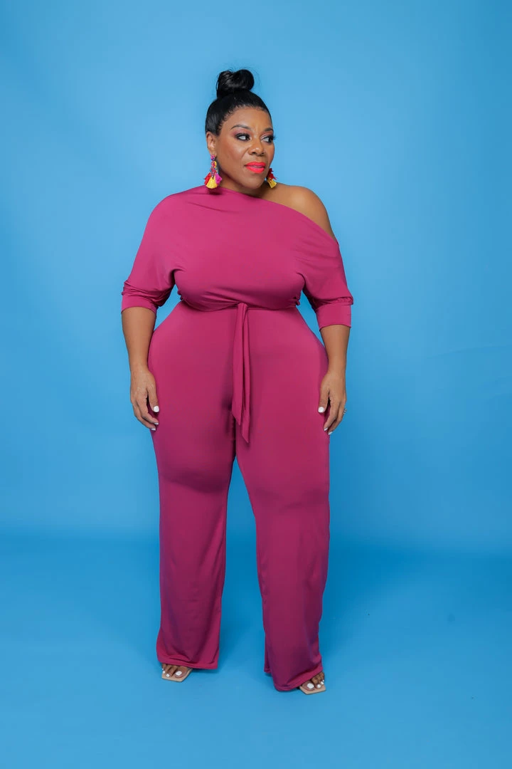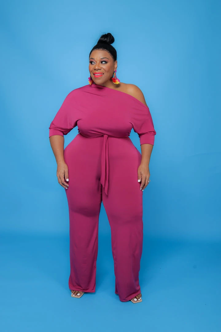 Curvaceous Boutique Magenta Dolly Off Shoulder Jumpsuit JUMPSUITS