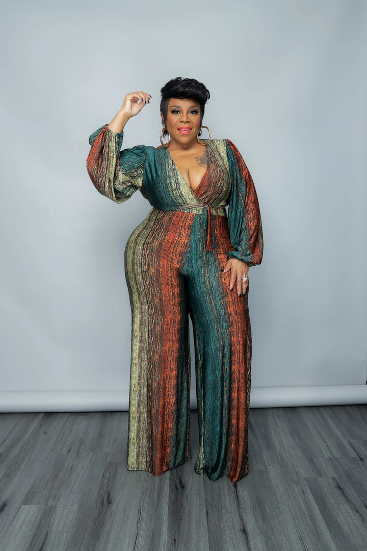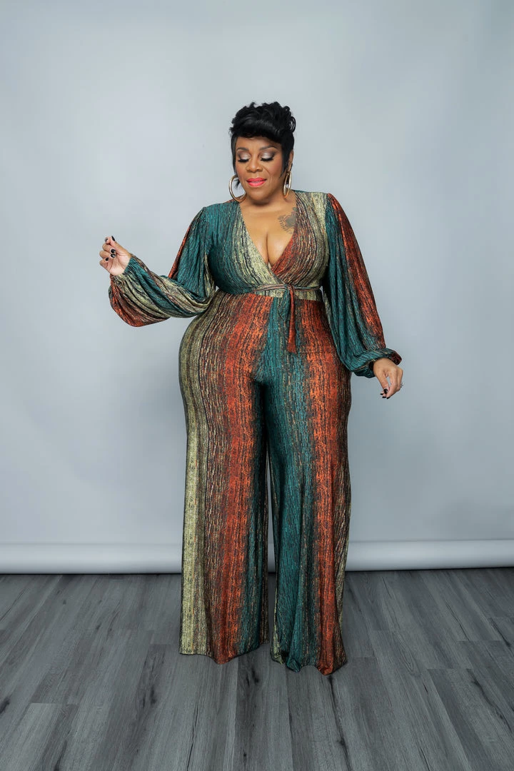 Curvaceous Boutique NEW Green Jolene Golden Streaks Jumpsuits
