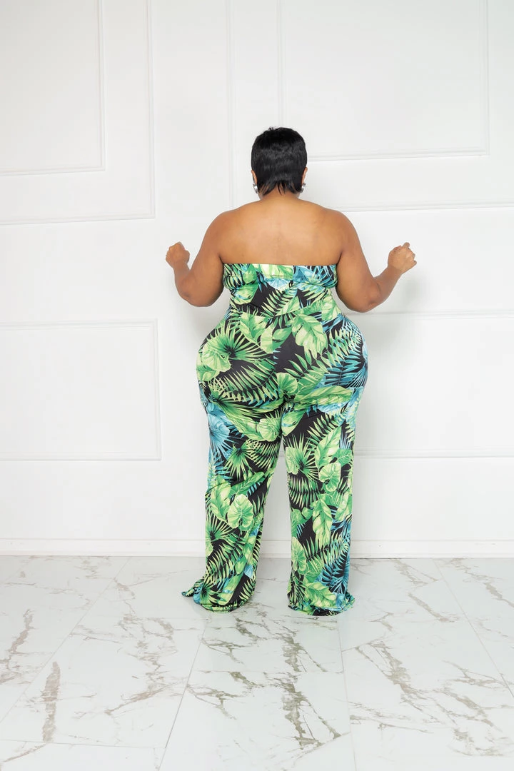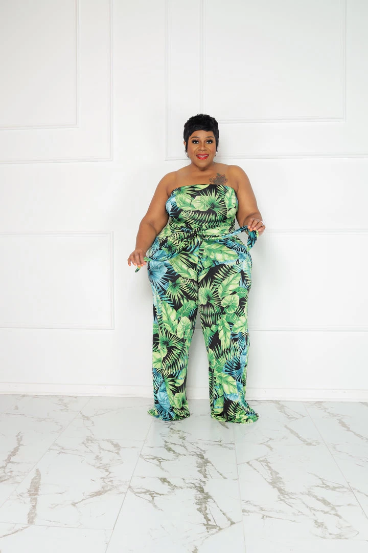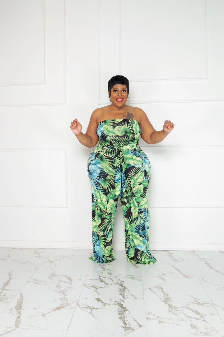 Curvaceous Boutique NEW Green Palms Getaway Jumpsuit