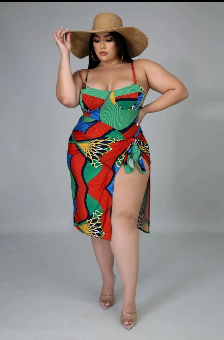 Curvaceous Boutique NEW Green Tropical Swim Set