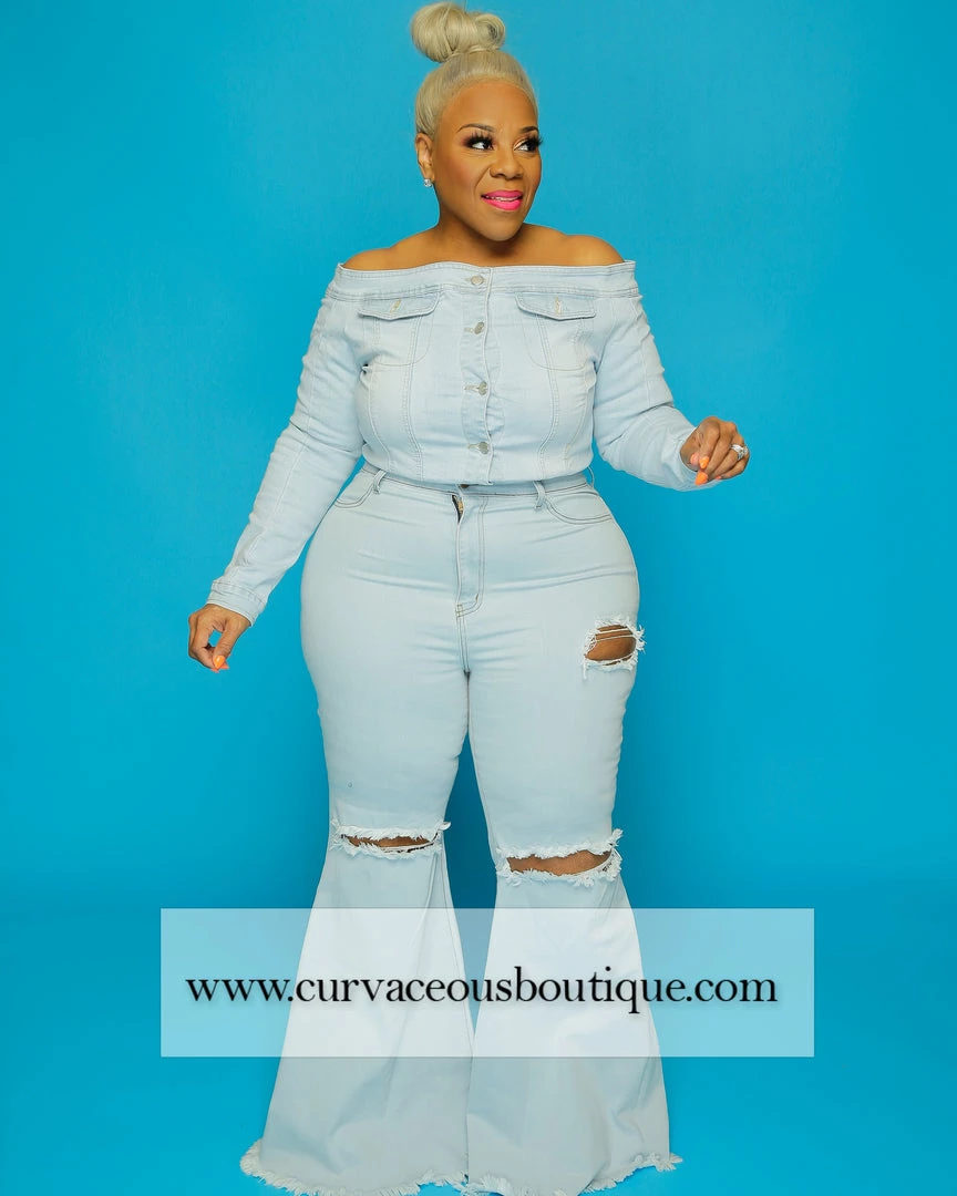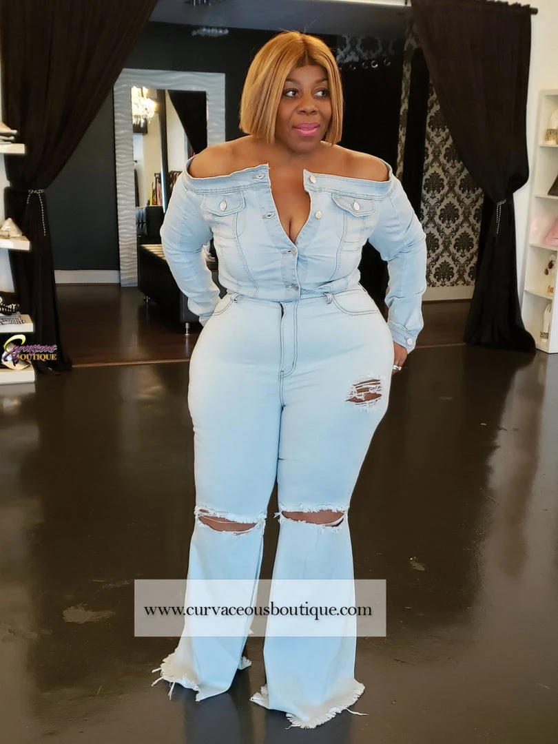 Curvaceous Boutique NEW Light Blue Retro Distressed Jeans