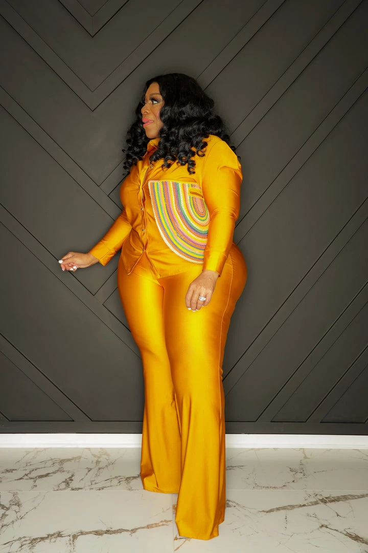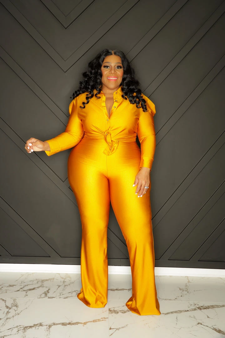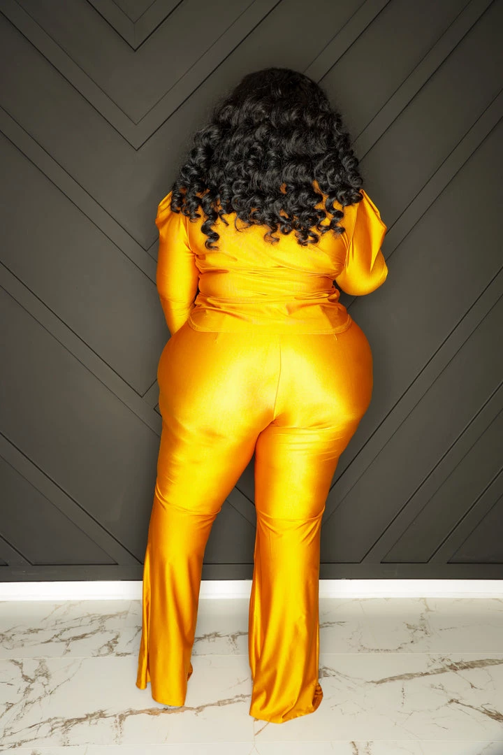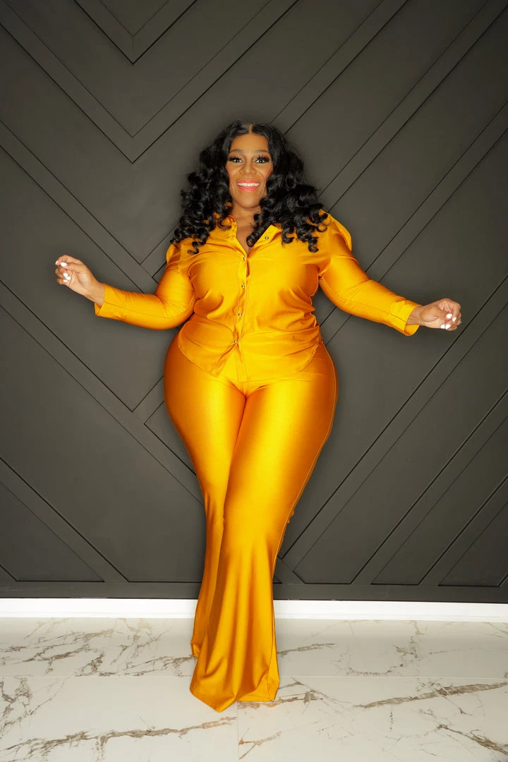 Curvaceous Boutique NEW Mustard Gold Button Pant Set