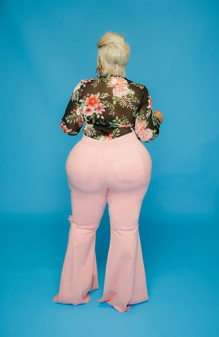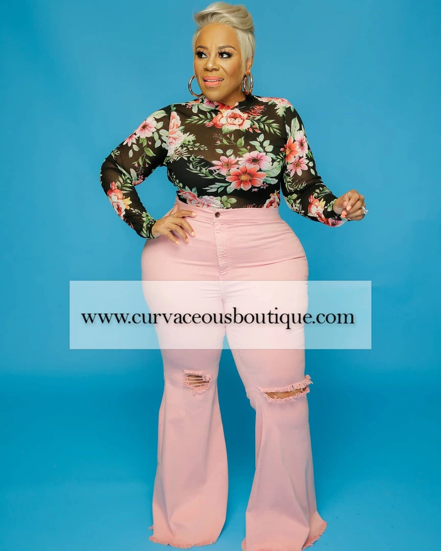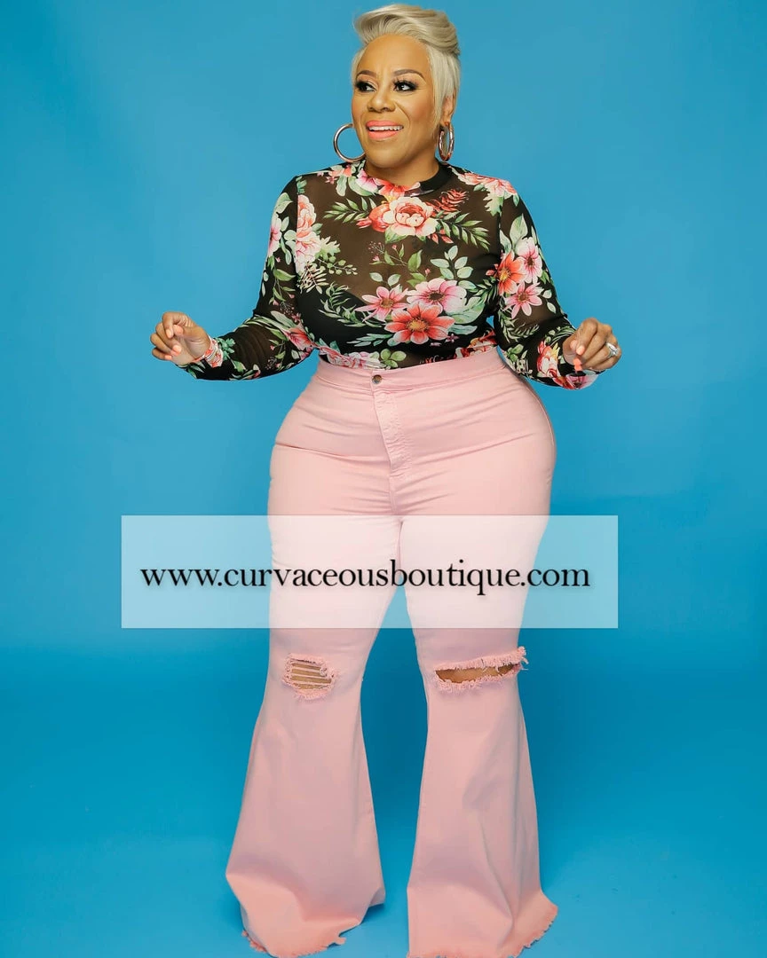 Curvaceous Boutique NEW Pink Distressed Bell Bottom Jeans