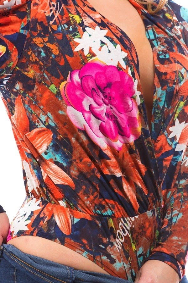 Curvaceous Boutique NEW Pink Floral Plunge Body-Suit