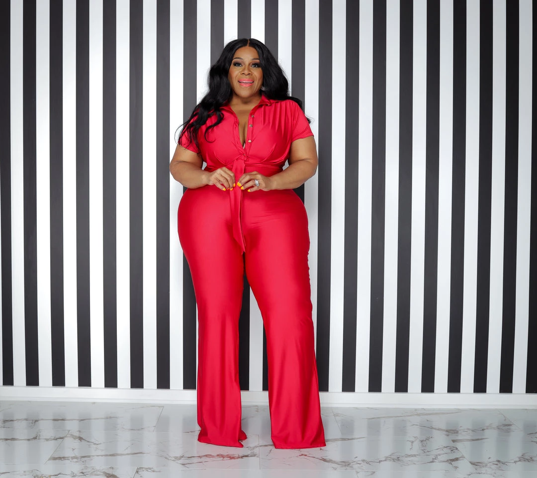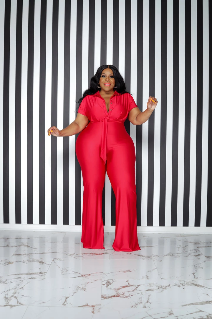 Curvaceous Boutique NEW Red Thommy Flare Jumpsuit
