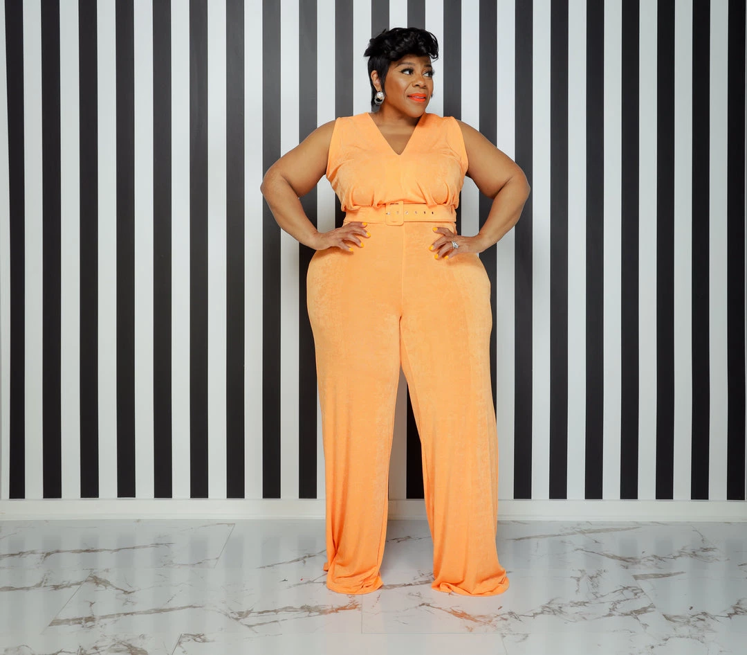 Curvaceous Boutique Orange Caylee Belt Jumpsuit JUMPSUITS
