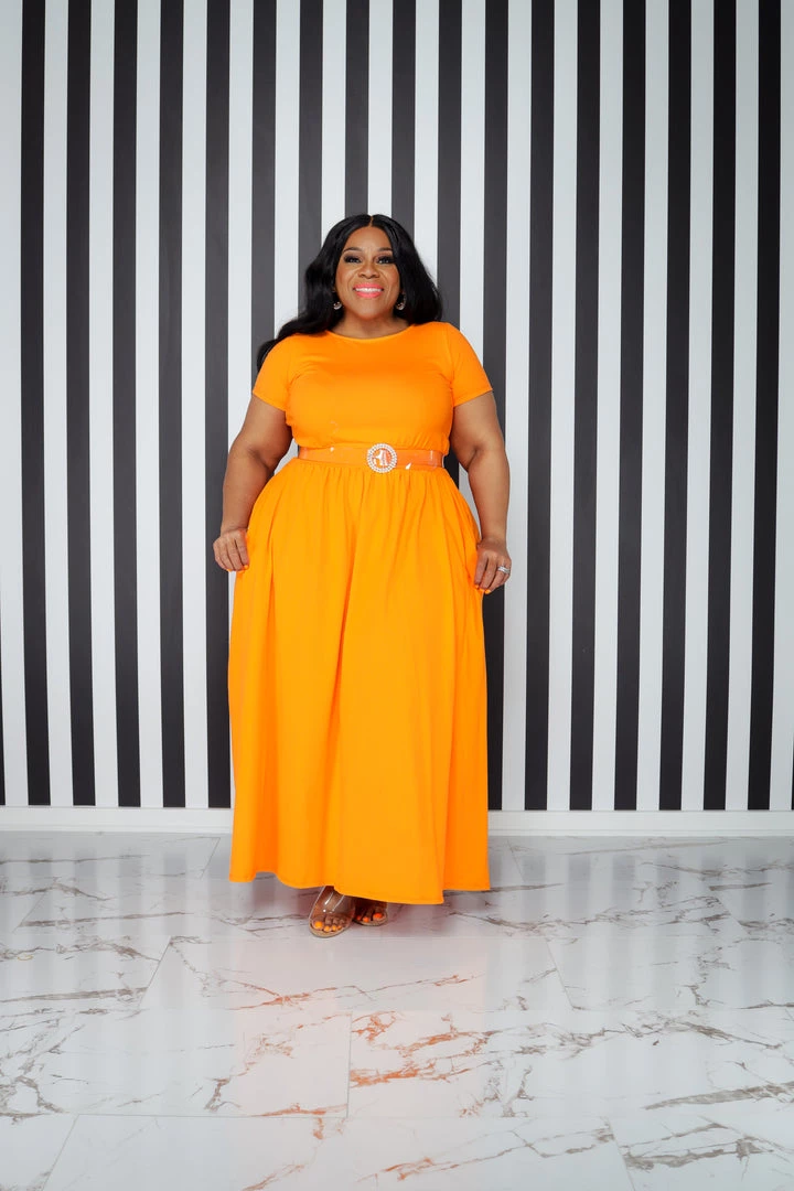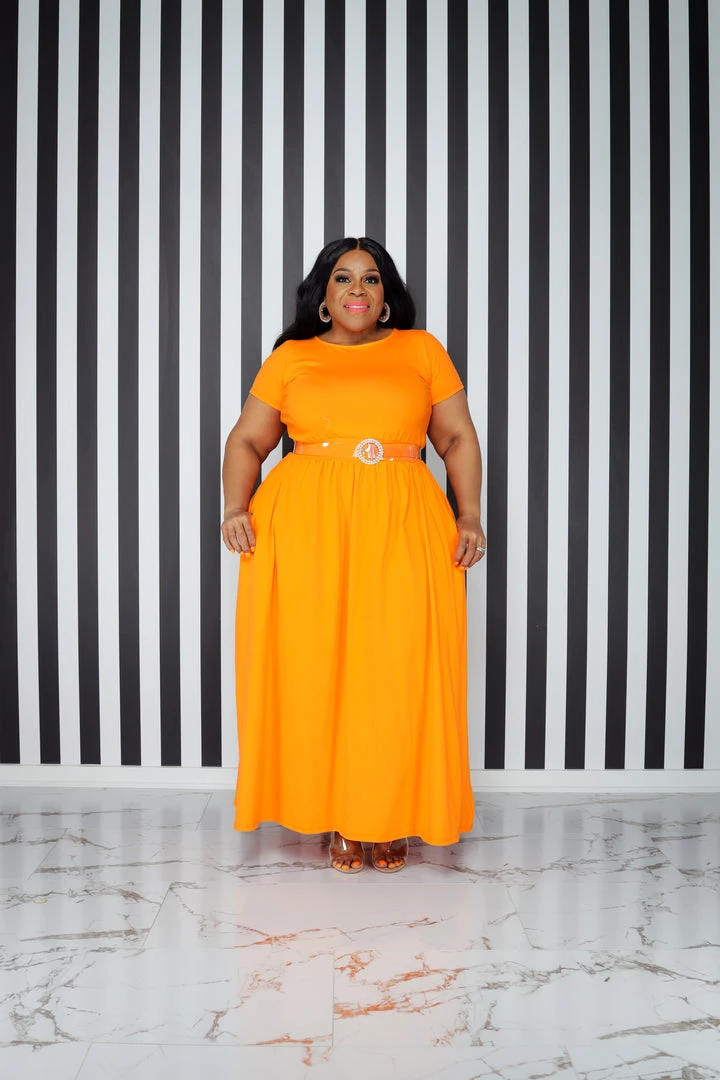 Curvaceous Boutique Orange Dare To Flare Dress