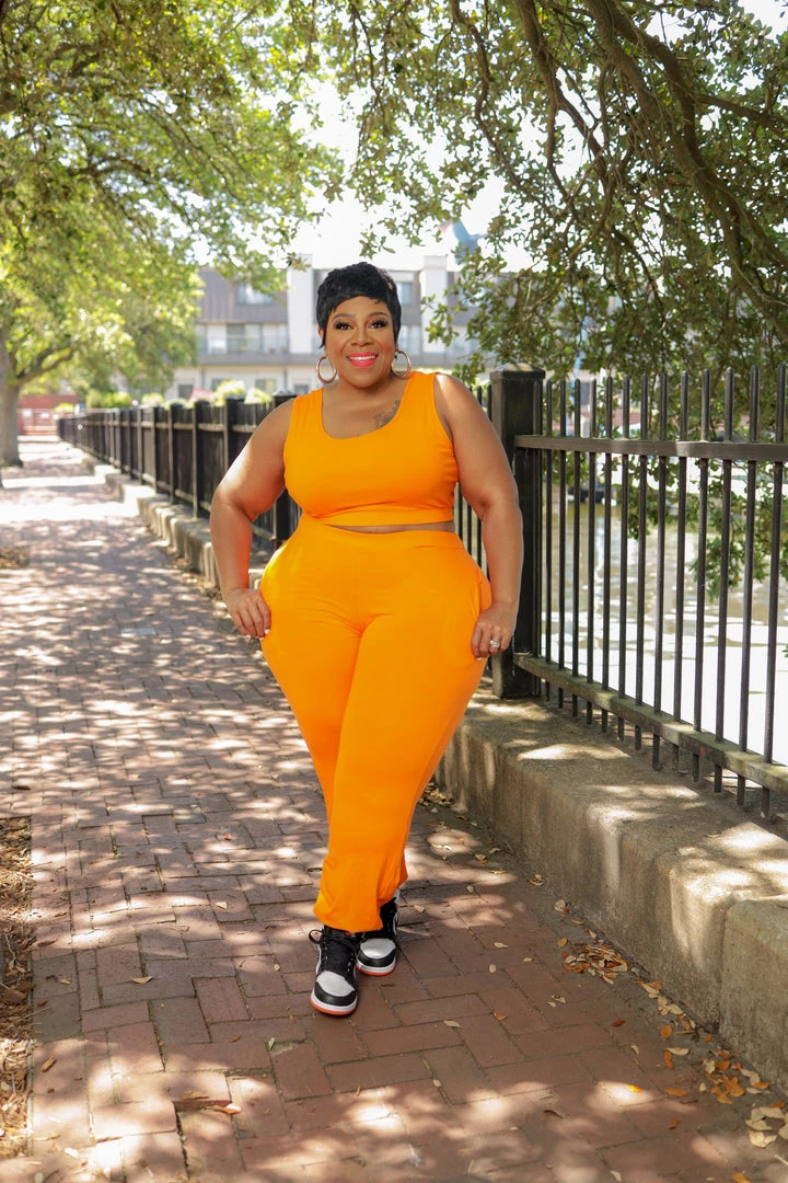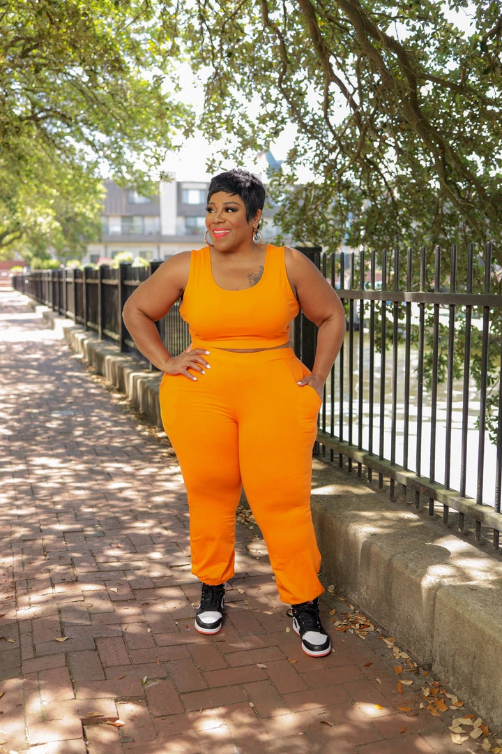 Curvaceous Boutique Orange Easy Going Jogger Set NEW