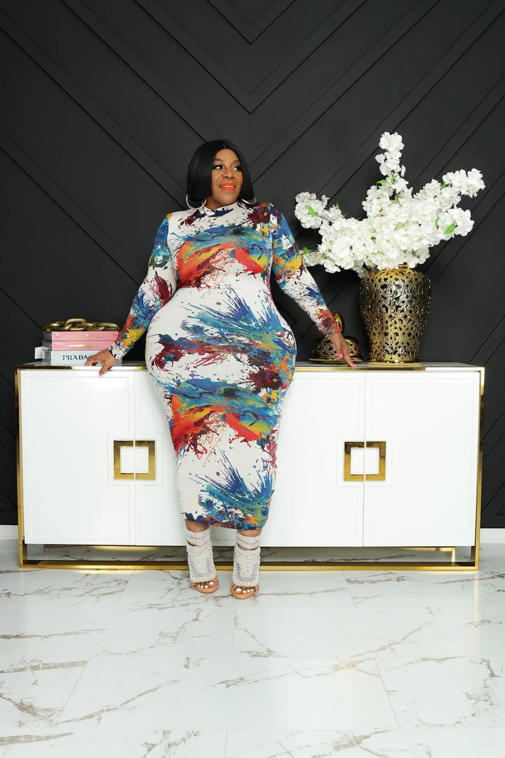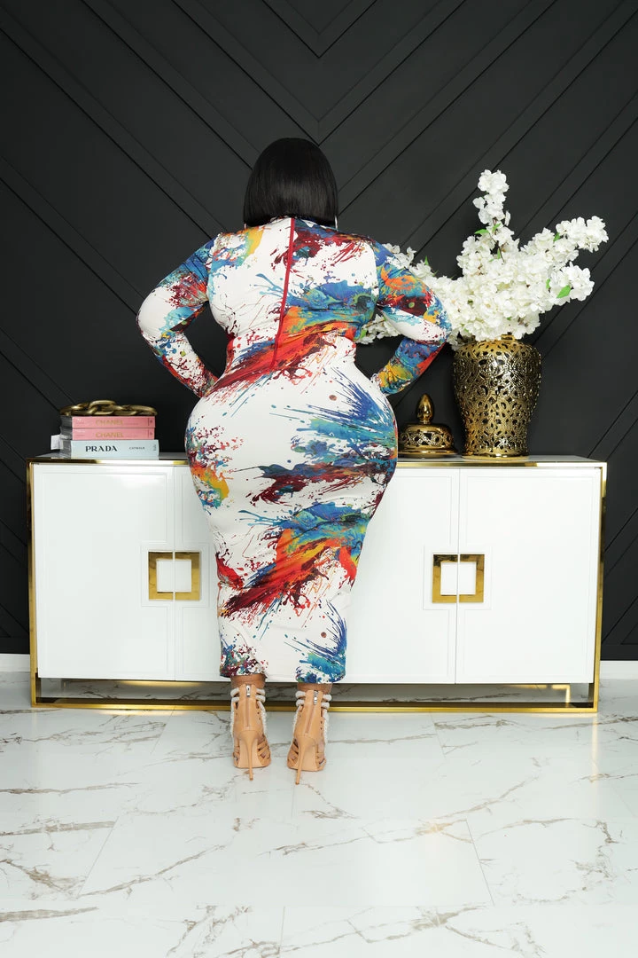 Curvaceous Boutique Paint Splatter Body-Con Dress NEW