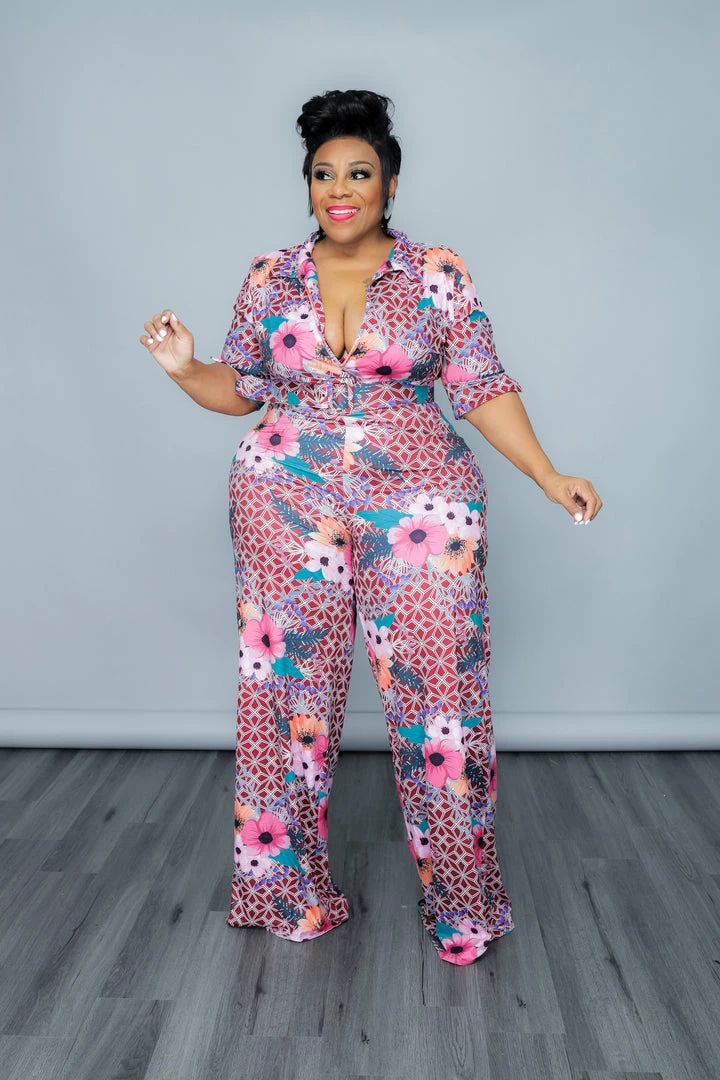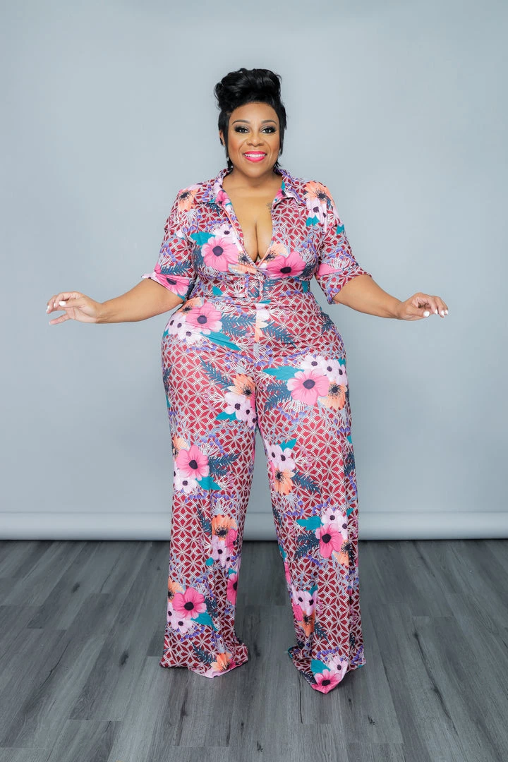 Curvaceous Boutique Pink Flower Bomb Jumpsuit