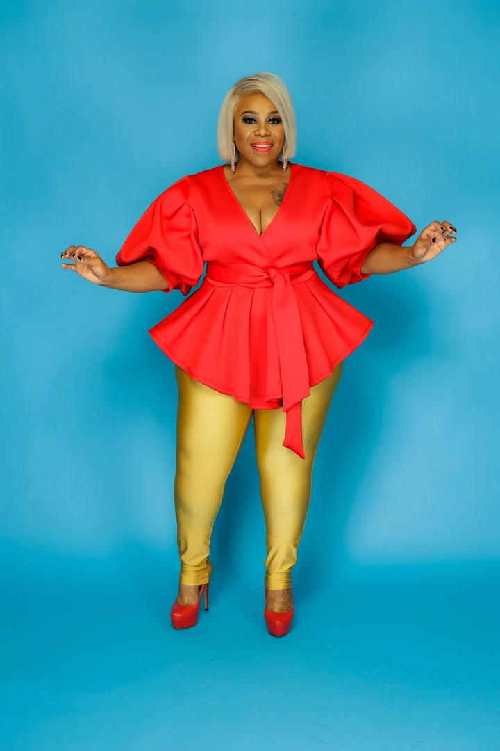 Curvaceous Boutique Red Balloon Sleeve Top