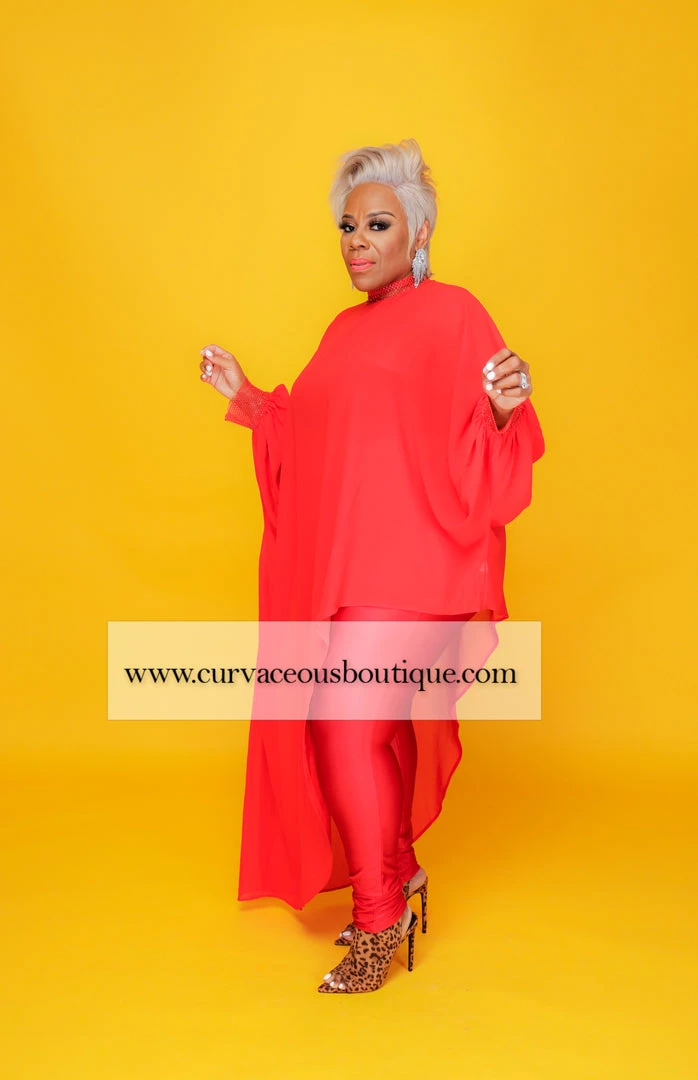 Curvaceous Boutique Red Chiffon Asymmetric Top
