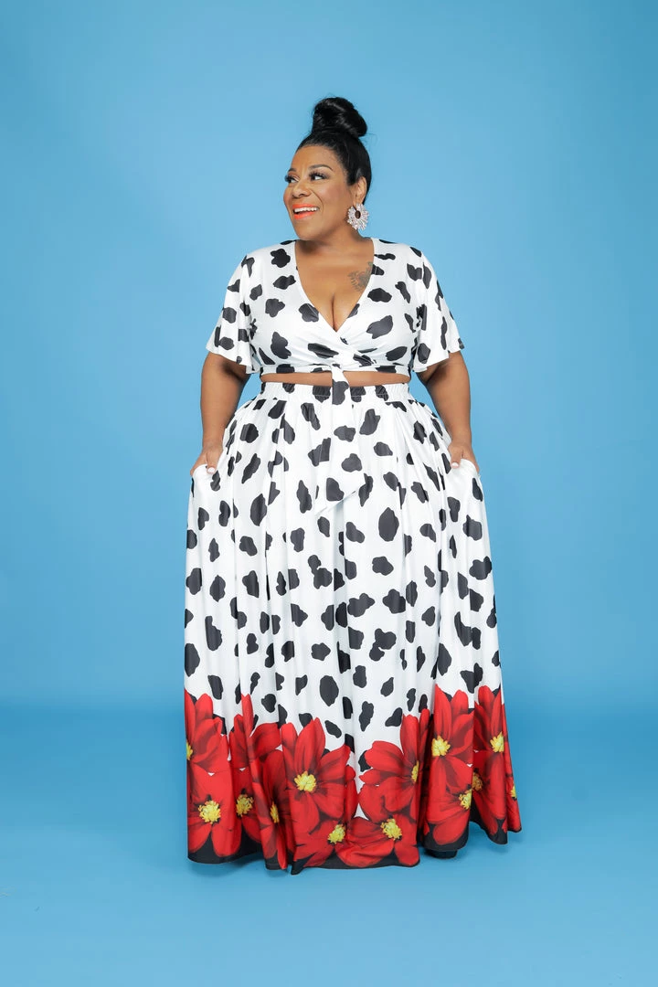 Curvaceous Boutique Red Daisy Floral Skirt Set SETS