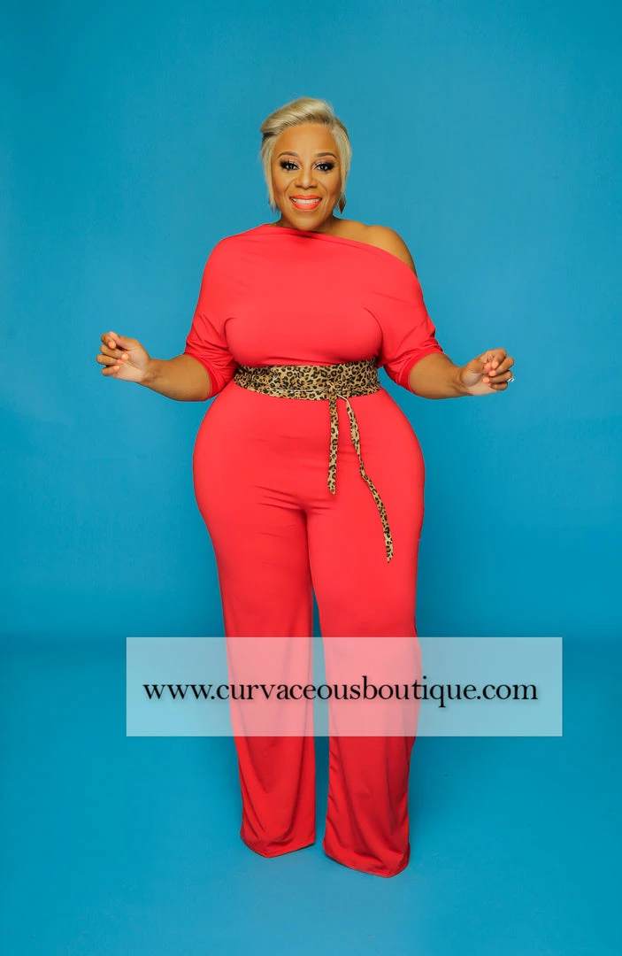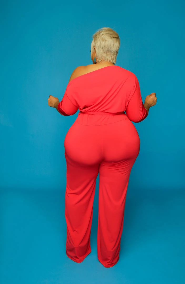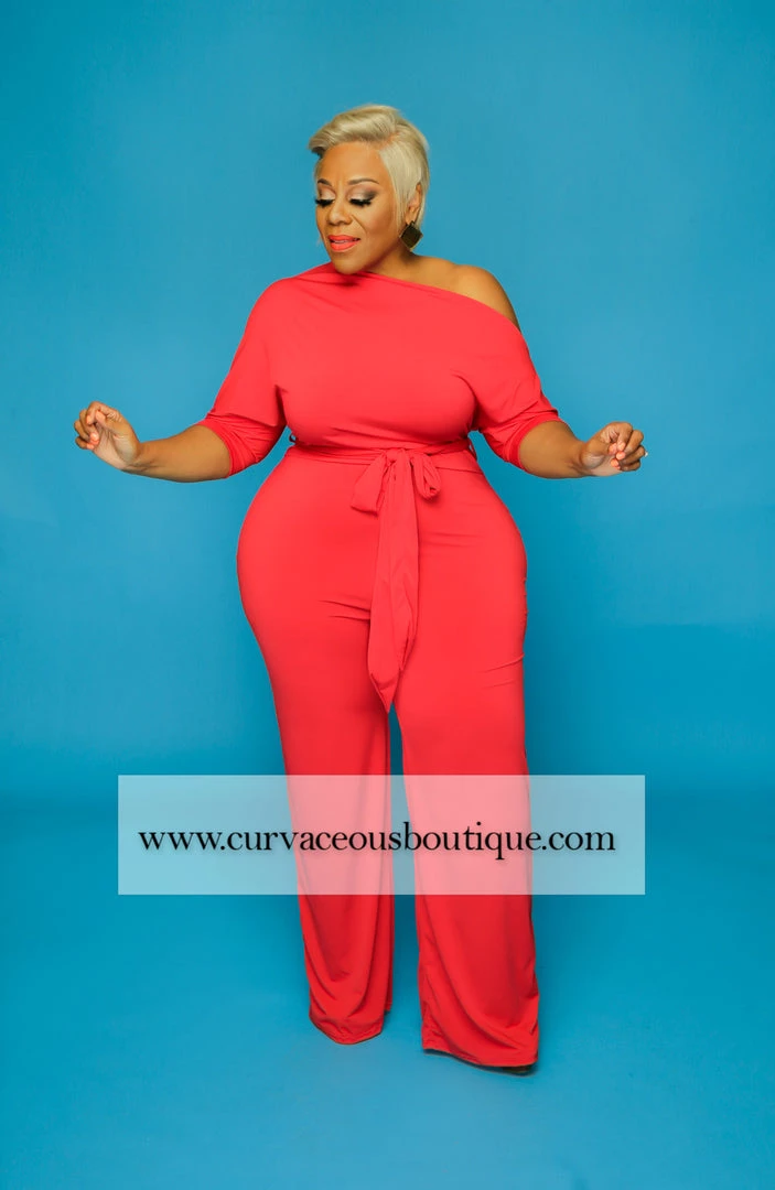 Curvaceous Boutique Red Dolly Off Shoulder Jumpsuit